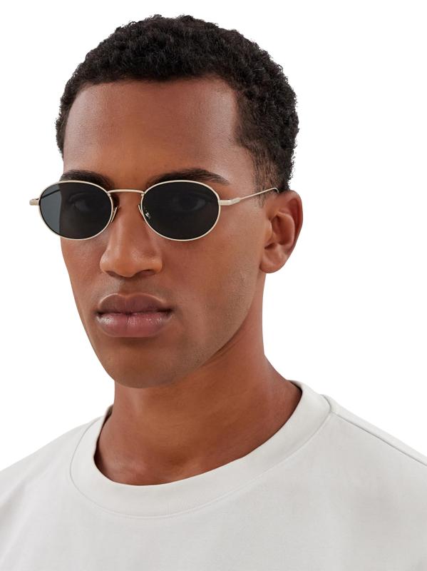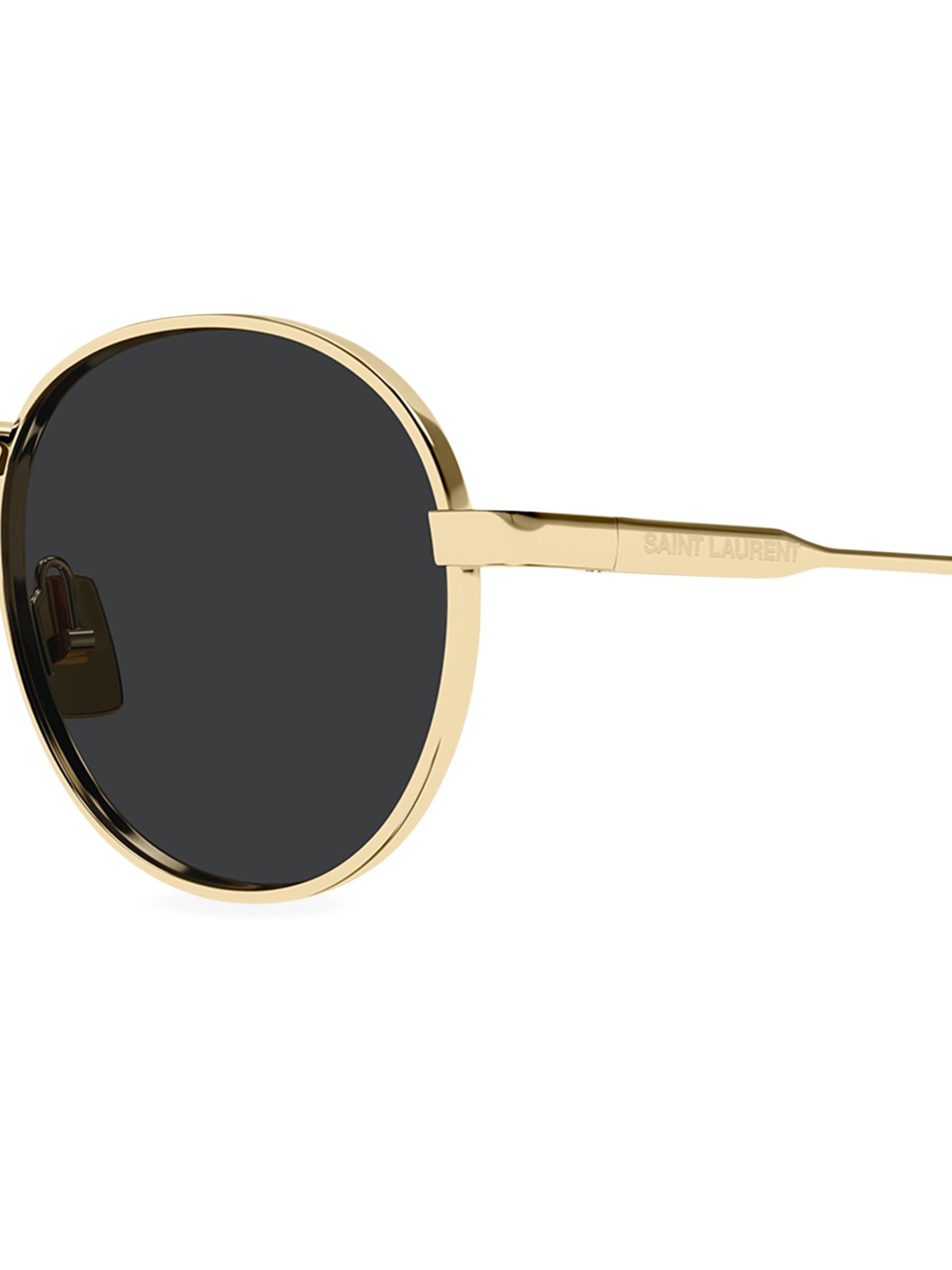 These sunglasses from Saint Laurent are designed in a round silhouette and feature thin, tapered arms with a logo engraved at the temples.