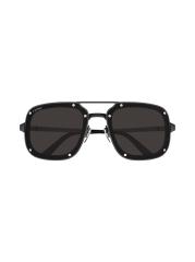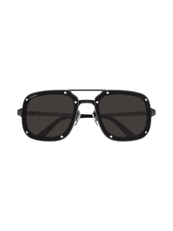 Square in design with a dual brow bar, these bold sunglasses flaunt screw stud accents around the frame.100% UV Protection Gradient lenses Case and cleaning cloth included Titanium Made in Japan