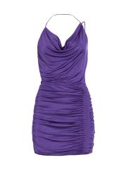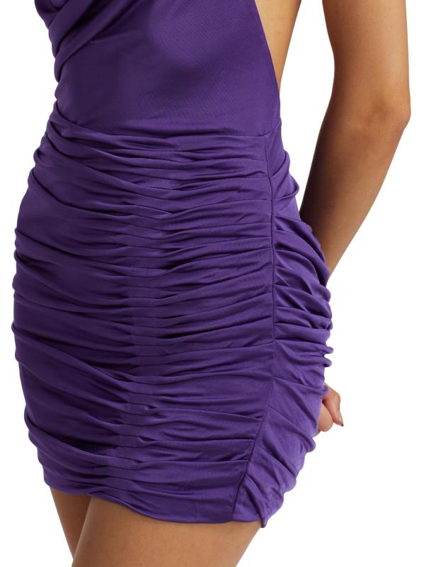 Finished in a flattering ruched design, Gauge81's sleek stretch jersey Adana minidress flaunts a contemporary halter design. This piece features a cowl neck, and an open back with a diagonal strap.