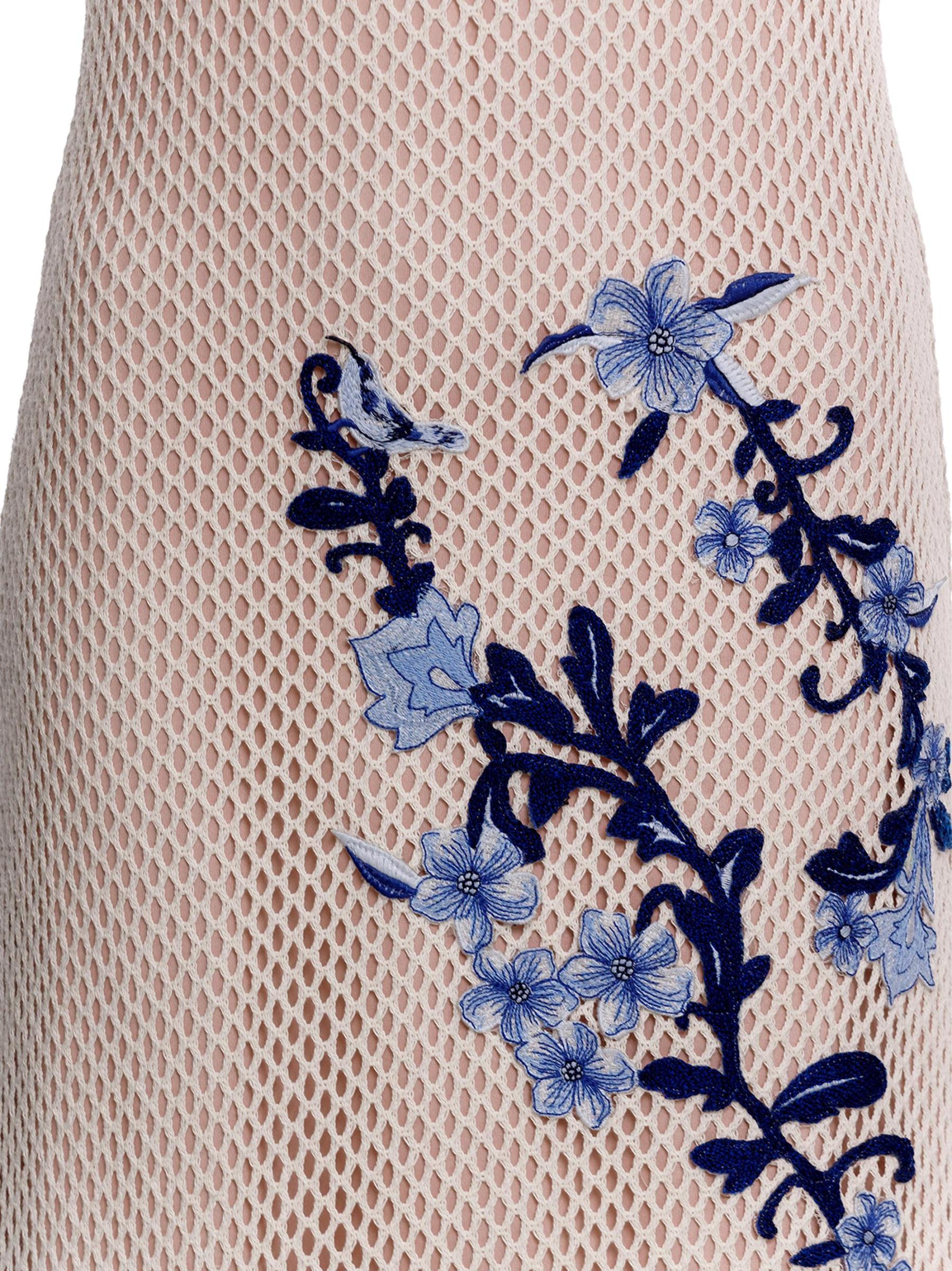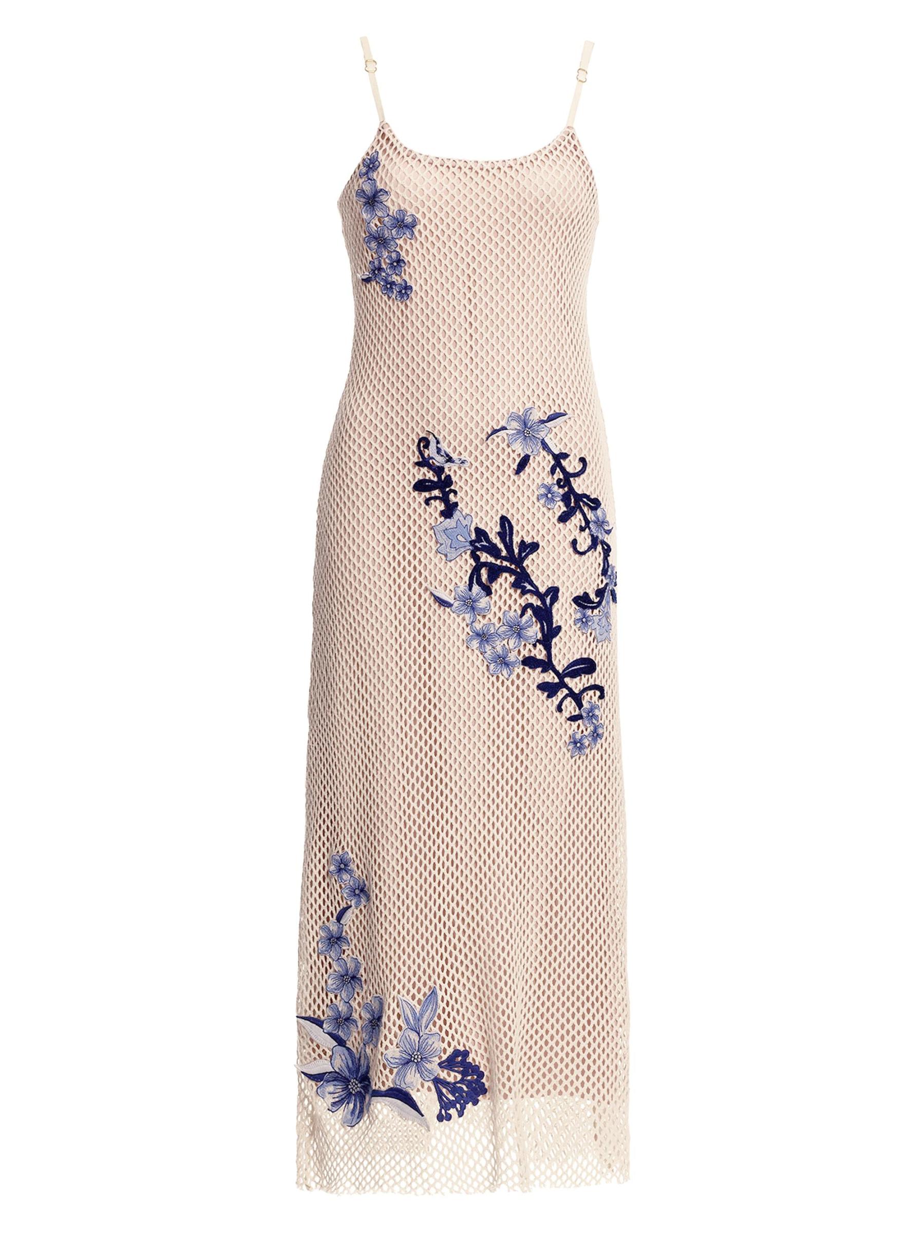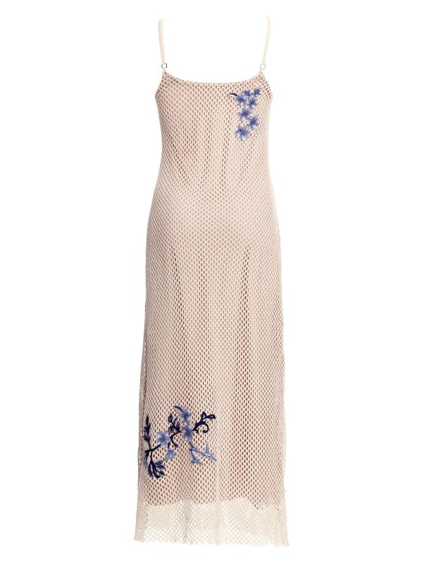 Agua Bendita’s Adelaida Tales midi-dress is crafted of a transparent mesh fabric and styled with vibrant embroidered flowers.Scoopneck Adjustable straps Pulls over 100% Cotton Lining: 86% polyester/14% elastane Hand wash Imported