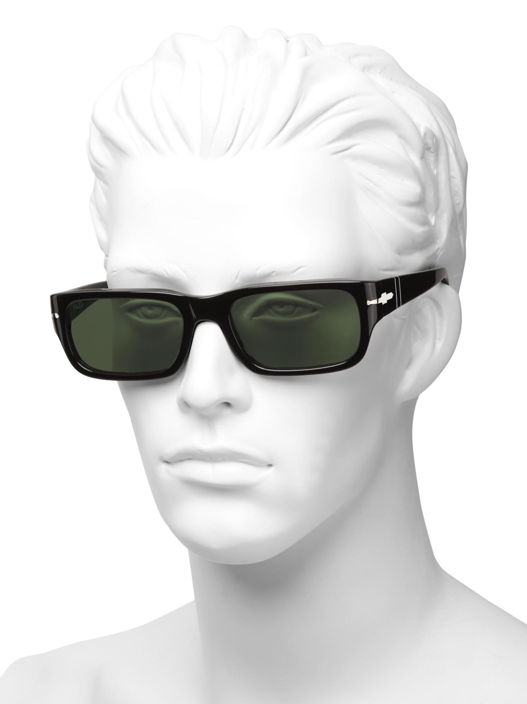Crafted of sleek acetate, Persol's Adrien sunglasses flaunt premium glass Barberini lenses and a strong rectangular frame.100% UV Protection Solid lenses Includes case