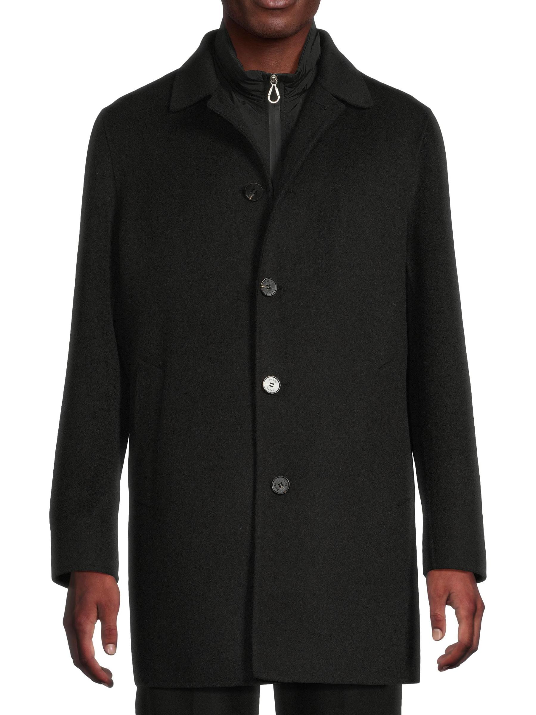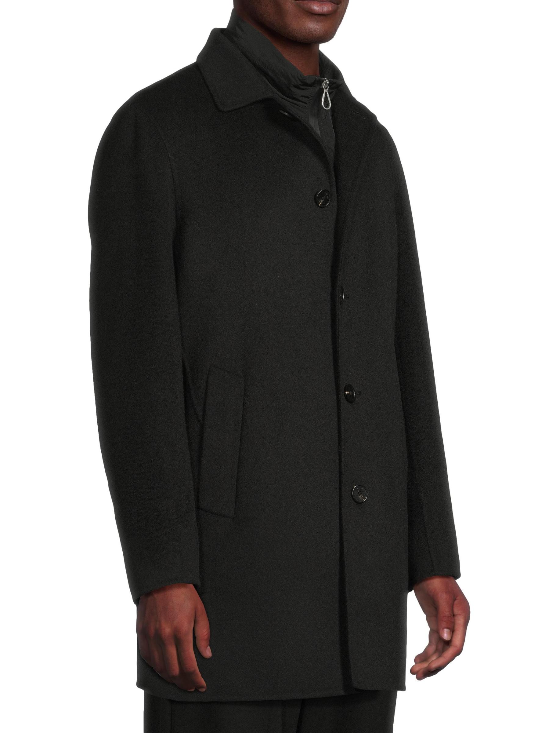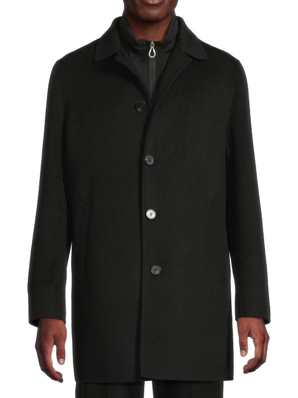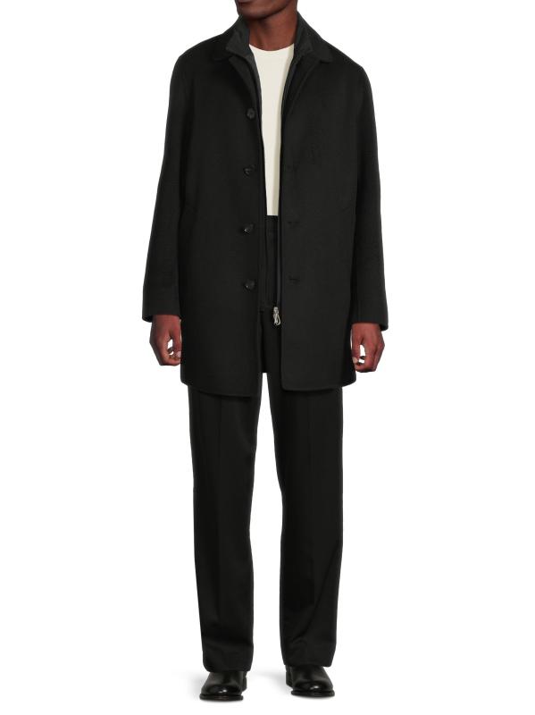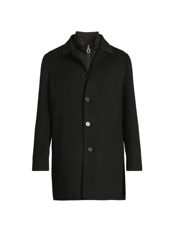 Paltò’s Alfredo car coat is crafted of wool and lined with a removable zippered quilted vest for additional warmth.