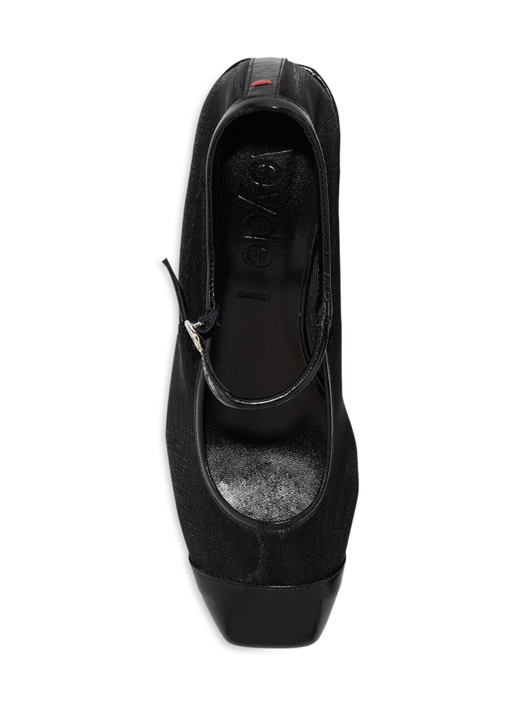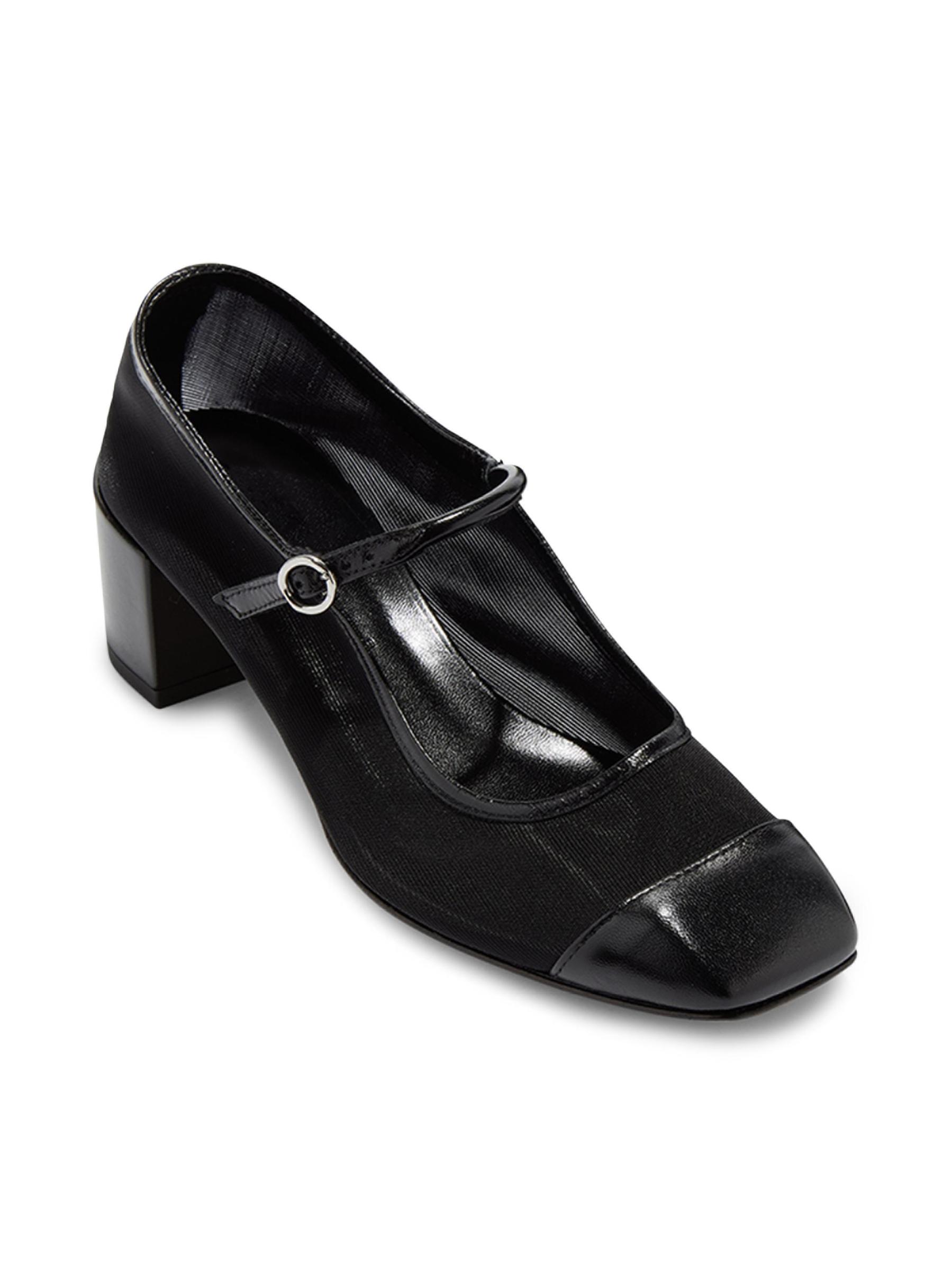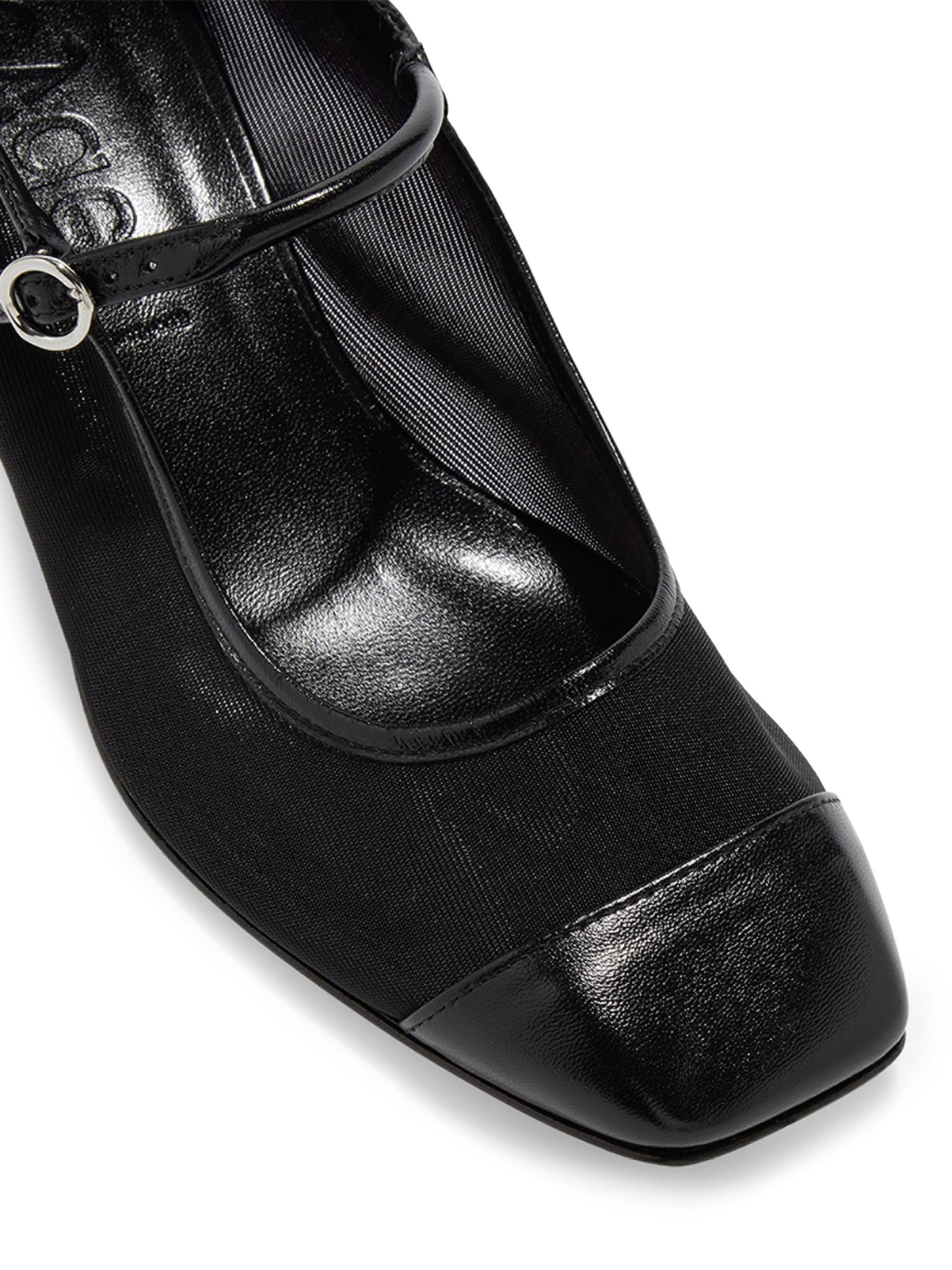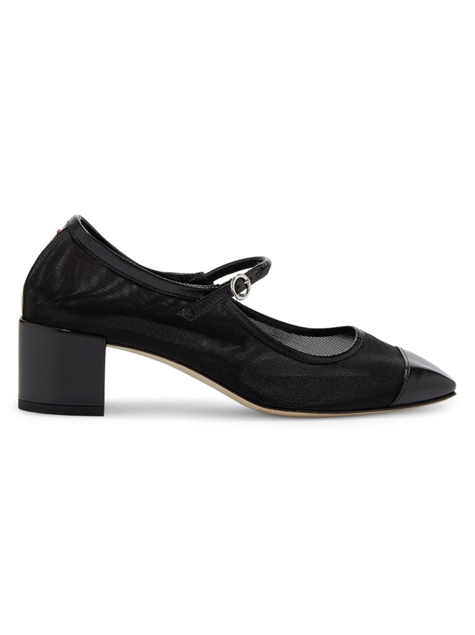Aeyde's Aline sheer mesh and leather ballerina pumps feature a squared cap toe, Mary Jane buckle, and a classic block heel.