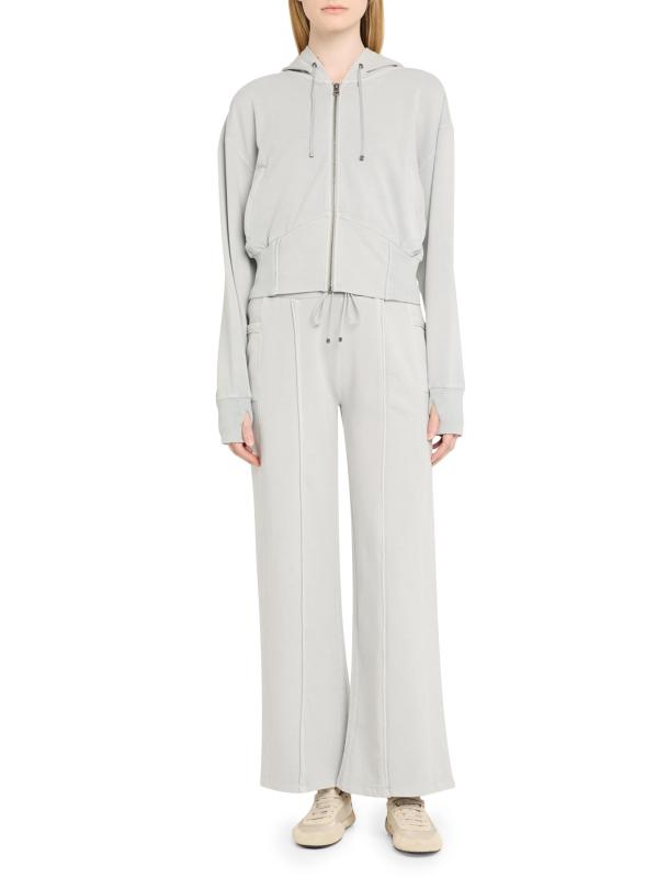 Blanc Noir’s Allegra wide-leg pants are crafted of garment-washed cotton and designed with pintuck seams.