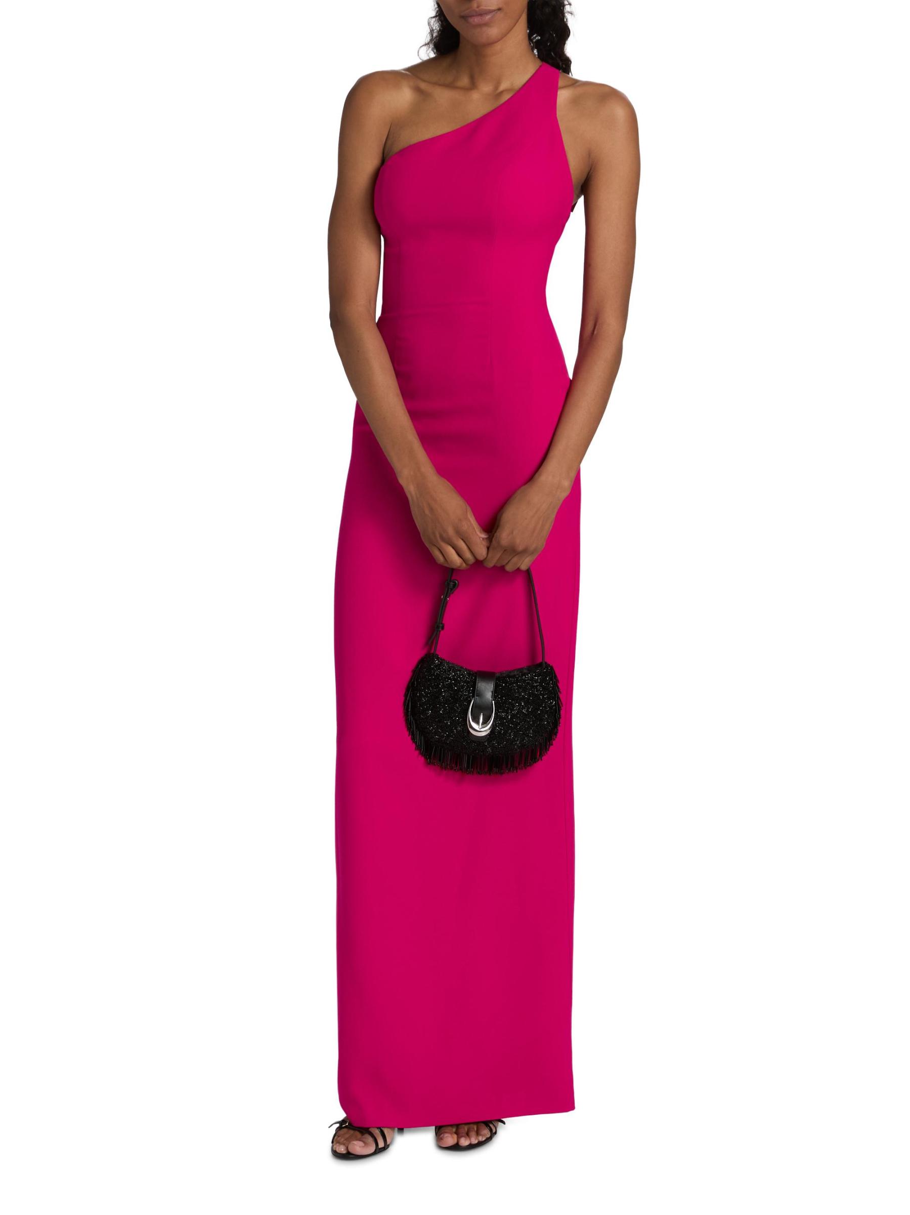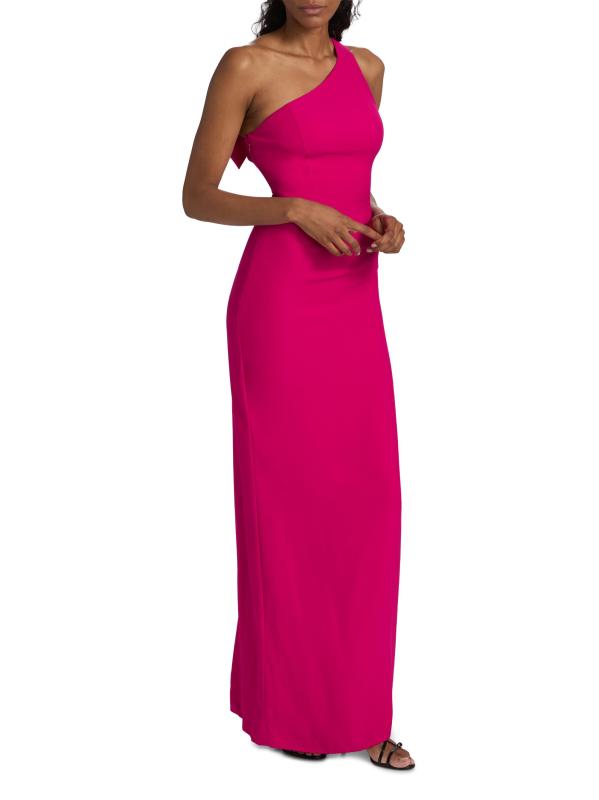 Cut in a fitted column silhouette, the Alpes gown from Vera Wang Bride is crafted of crepe with an asymmetric neck and bow detail at the back.Asymmetric neck Open neck 100% polyester Dry clean Imported