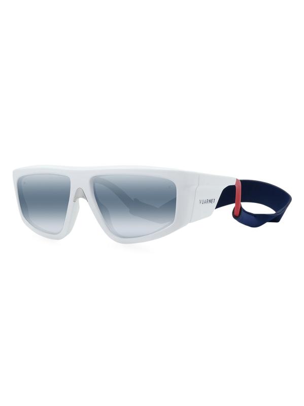 These Altitude 03 sunglasses from Vuarnet feature a rectangular silhouette with thick, tapered arms, detachable sunglass straps,and saddle nose.