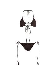 Maygel Coronel's Arazo two-piece bikini features softly ruched cups and ultra-thin straps for versatile styling, paired with low-rise bottoms that are adorned with delicate side ties and rosebud accents. 78% polyamide/22% elastane. Hand wash. Imported.