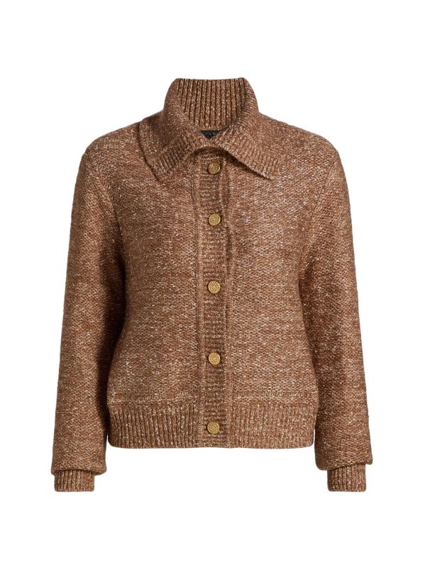 Kobi Halperin's Armand cardigan highlights the relaxed silhouette with a cozy speckled knit. Finished in a defined rib-knit trim, this piece features a spread collar, button-front, and long sleeves.Spread collar Long sleeves Rib-knit trim Button front closure 55% polyester/45% acrylic Dry clean Imported
