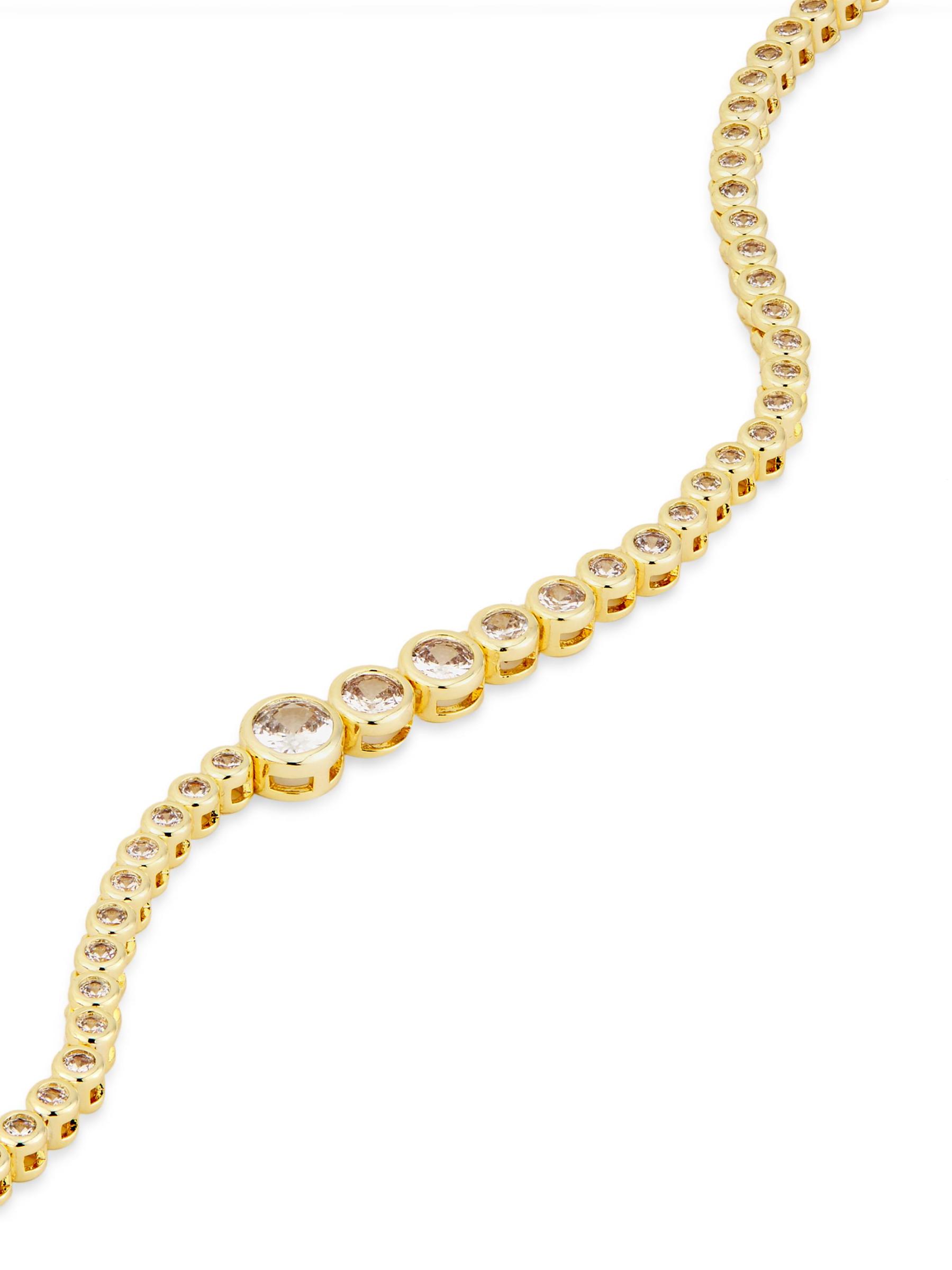 Crafted of 14K-gold-plated sterling silver, Shashi's Astro tennis necklace features sparkling round bezel-set cubic zirconia.