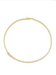 Crafted of 14K-gold-plated sterling silver, Shashi's Astro tennis necklace features sparkling round bezel-set cubic zirconia.Cubic zirconia 14K gold-plated sterling silver Box clasp with safety latch Imported