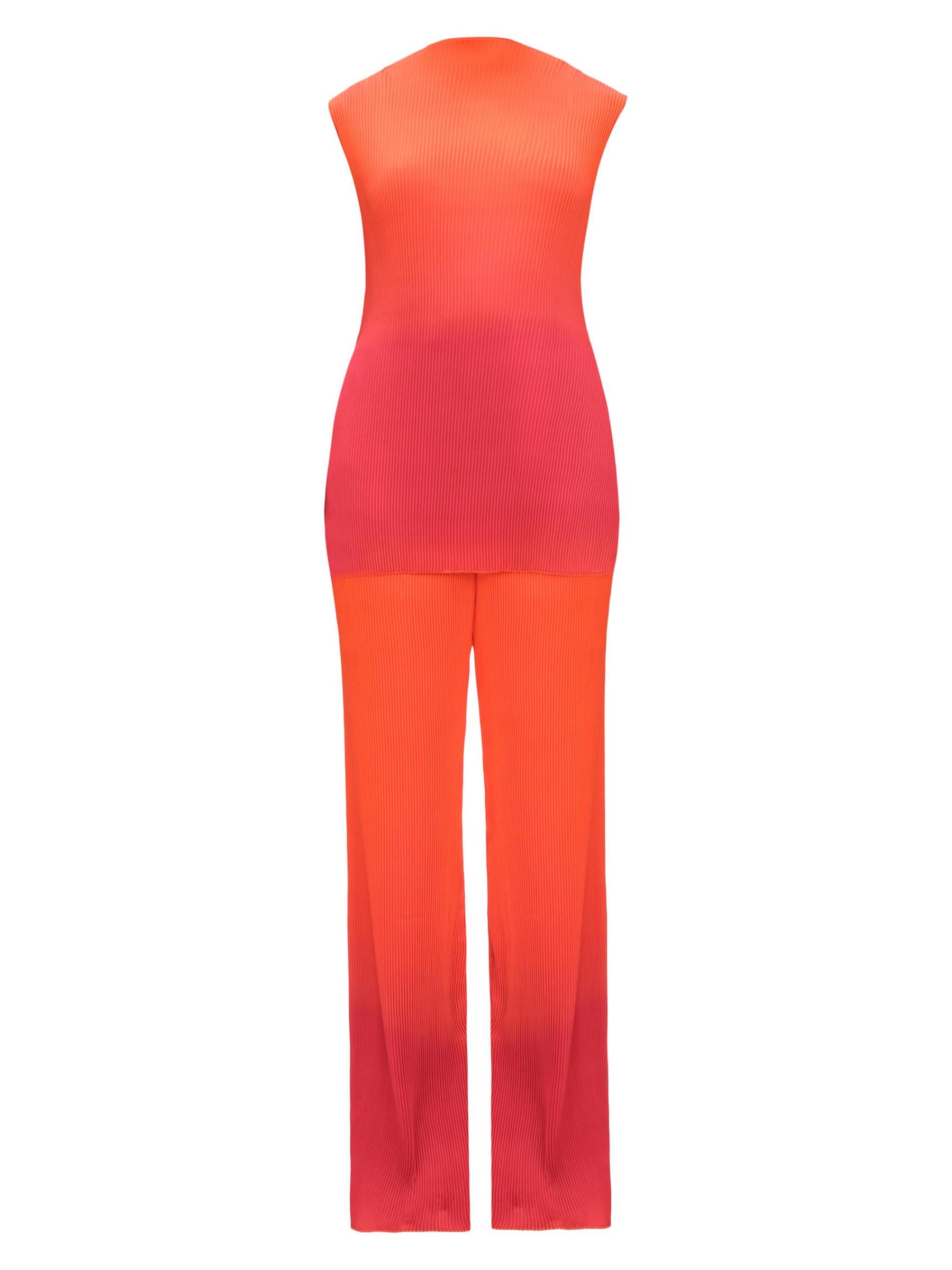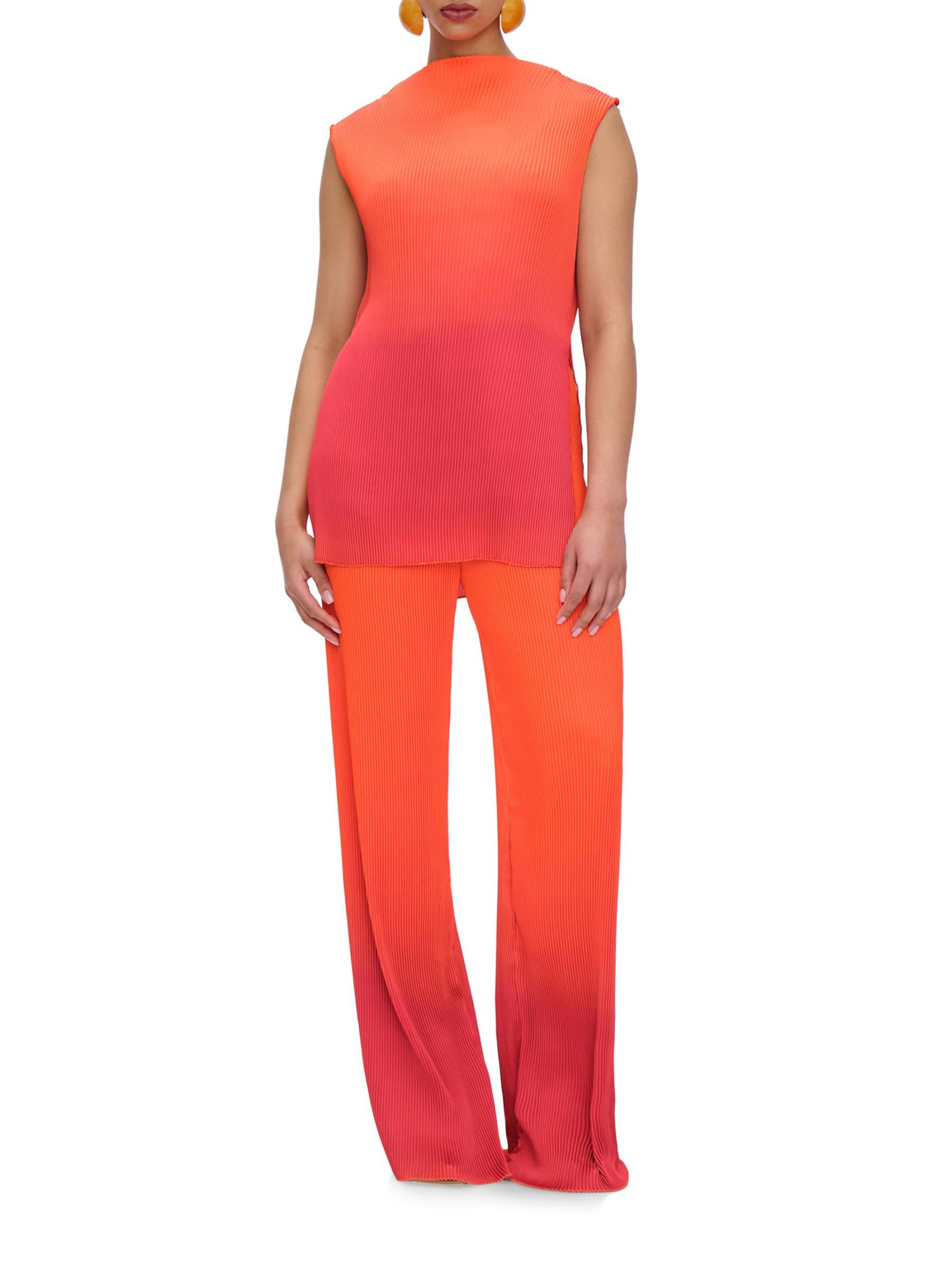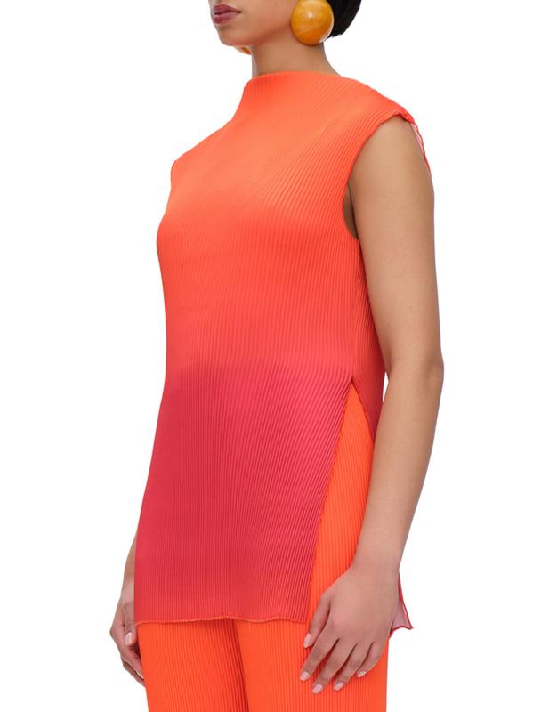 Andrea Iyamah’s sleeveless tunic is crafted of ombré pleated plissé fabric.