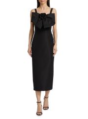 Crafted of silk faille, this Aubrey sheath midi-dress from Alexia María features an oversized bow accented with a rosette appliqué at the neckline.Square neck Straps Bodice boning Pencil skirt Back slit Concealed back zip closure 100% Silk Dry clean Made in USA