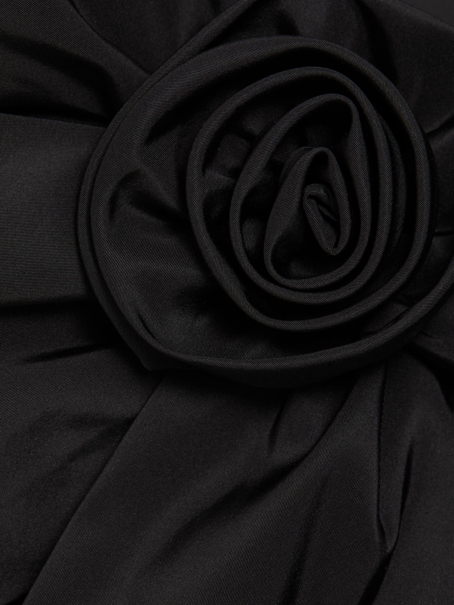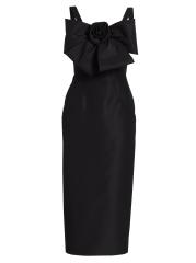 Crafted of silk faille, this Aubrey sheath midi-dress from Alexia María features an oversized bow accented with a rosette appliqué at the neckline.