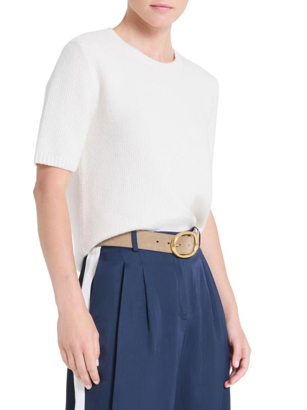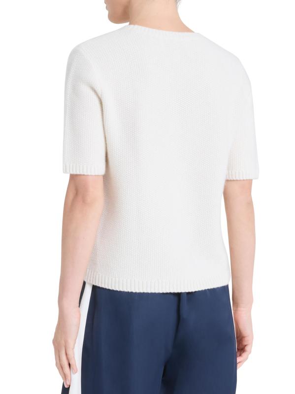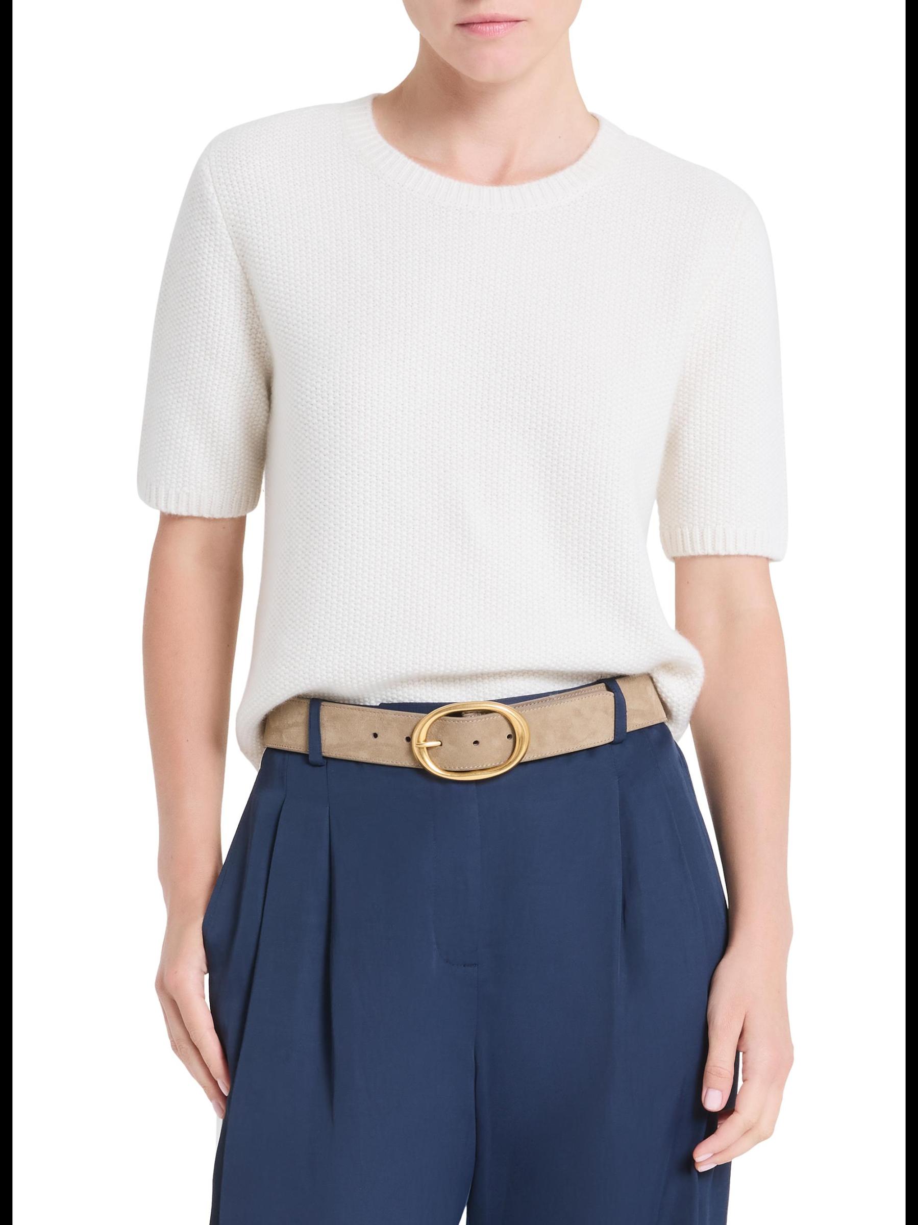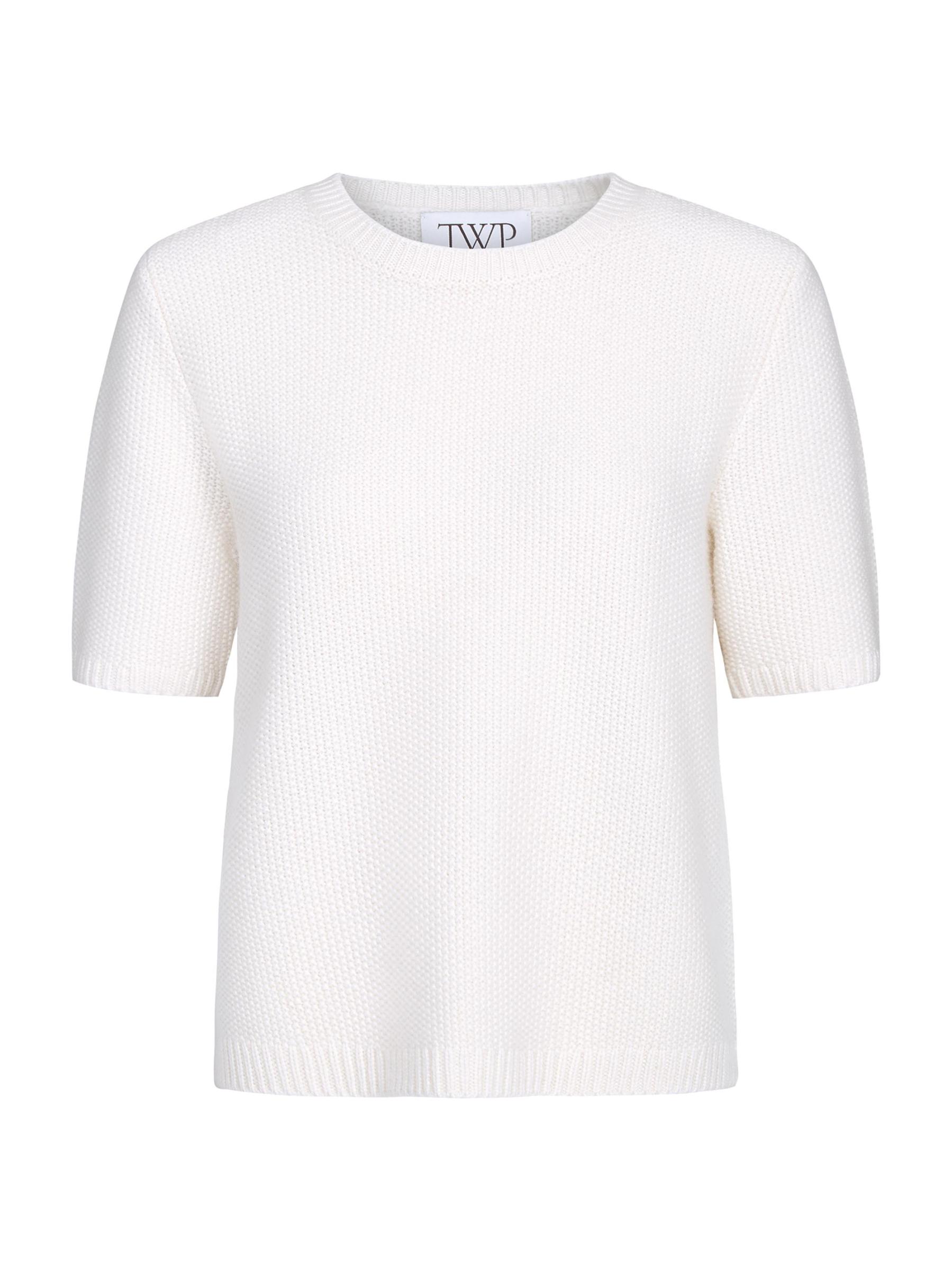 Knit from wool in a textured seed stitch, this Audrey top from TWP features a crewneck, short-sleeves, and rib-knit trim.Crewneck Short sleeves Rib-knit trim Pulls over 100% wool Dry clean Imported