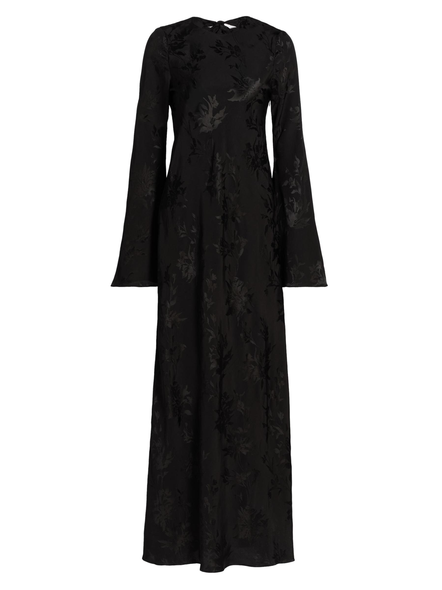 Nandita features a jacquard design with a distinctive back tie detail.Jewel neck Long sleeves Open back Back tie and concealed side zip closures 100% Viscose Dry clean Imported