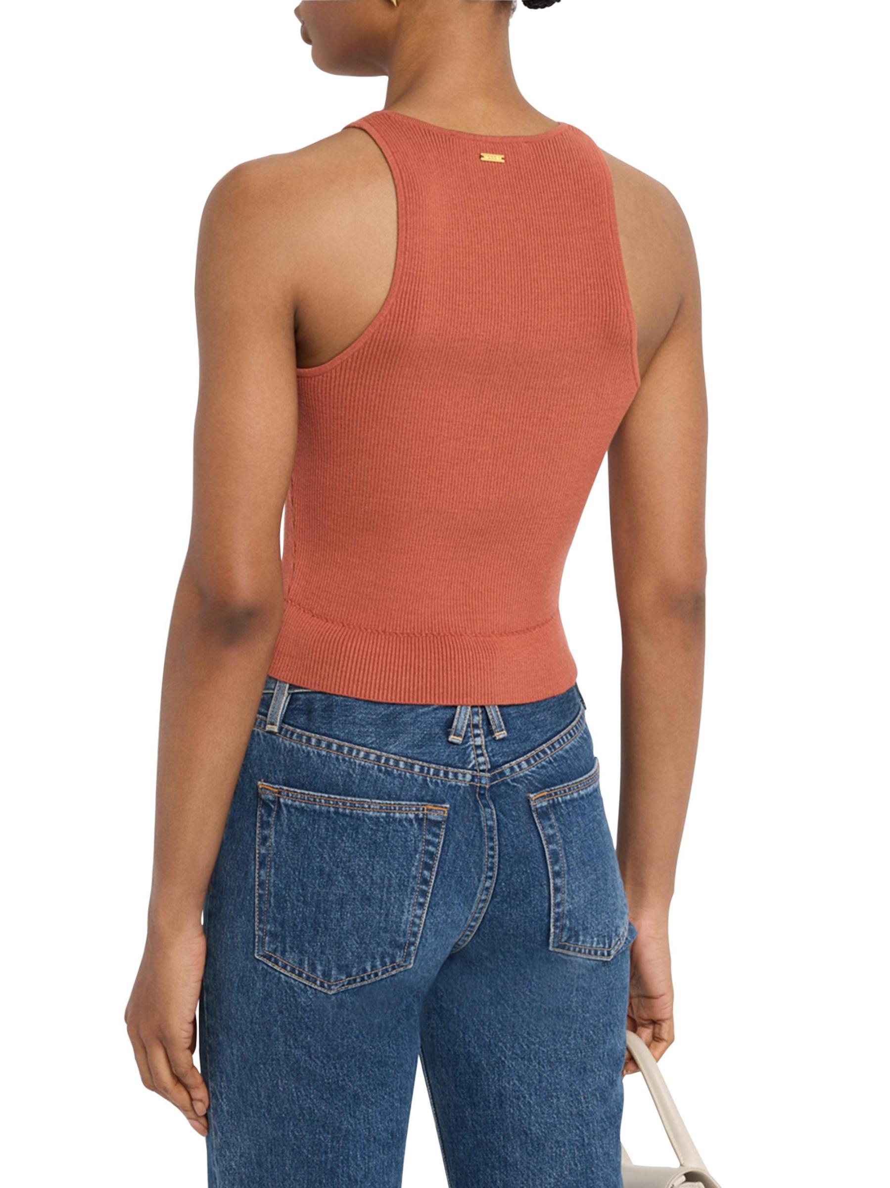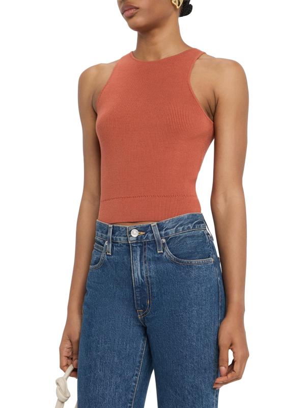 Crafted of a rib-knit stretch fabric, this Avery crop tank from Toccin is styled with a crewneck and racerback.Crewneck Sleeveless Racerback Pulls over 59% rayon/23% polyester/18% nylon Dry clean Imported