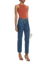 Crafted of a rib-knit stretch fabric, this Avery crop tank from Toccin is styled with a crewneck and racerback.
