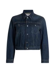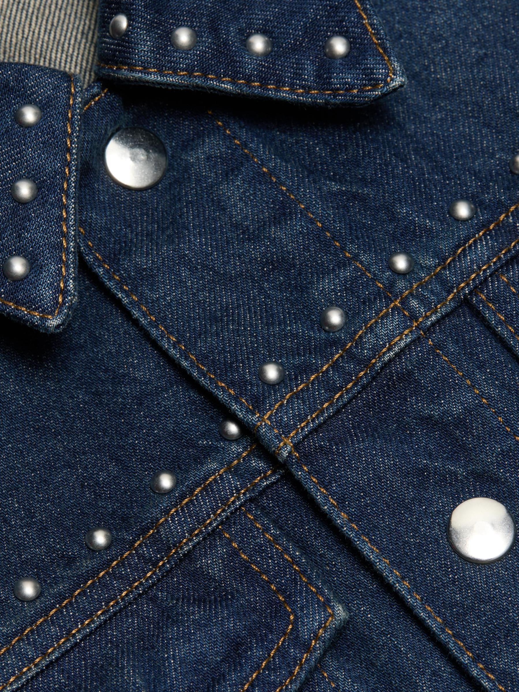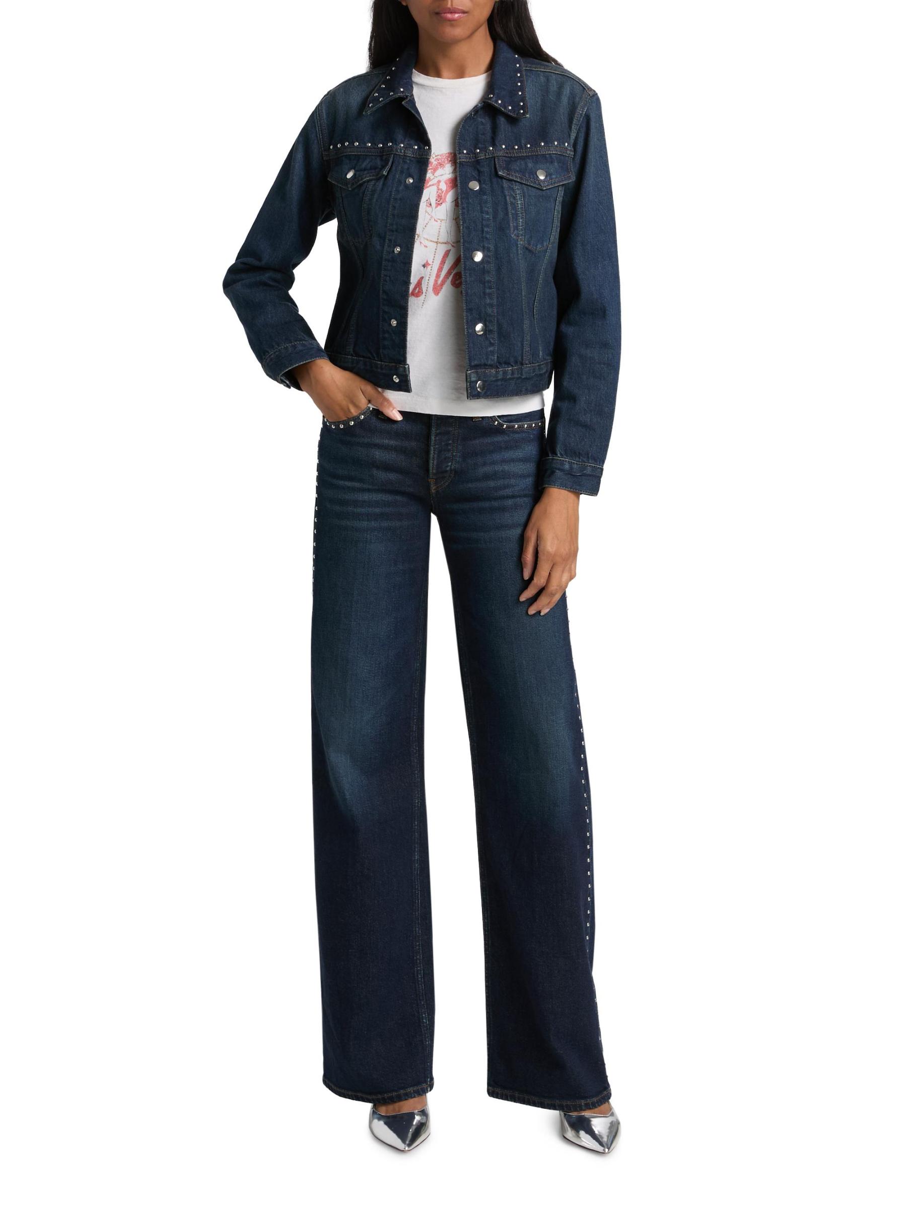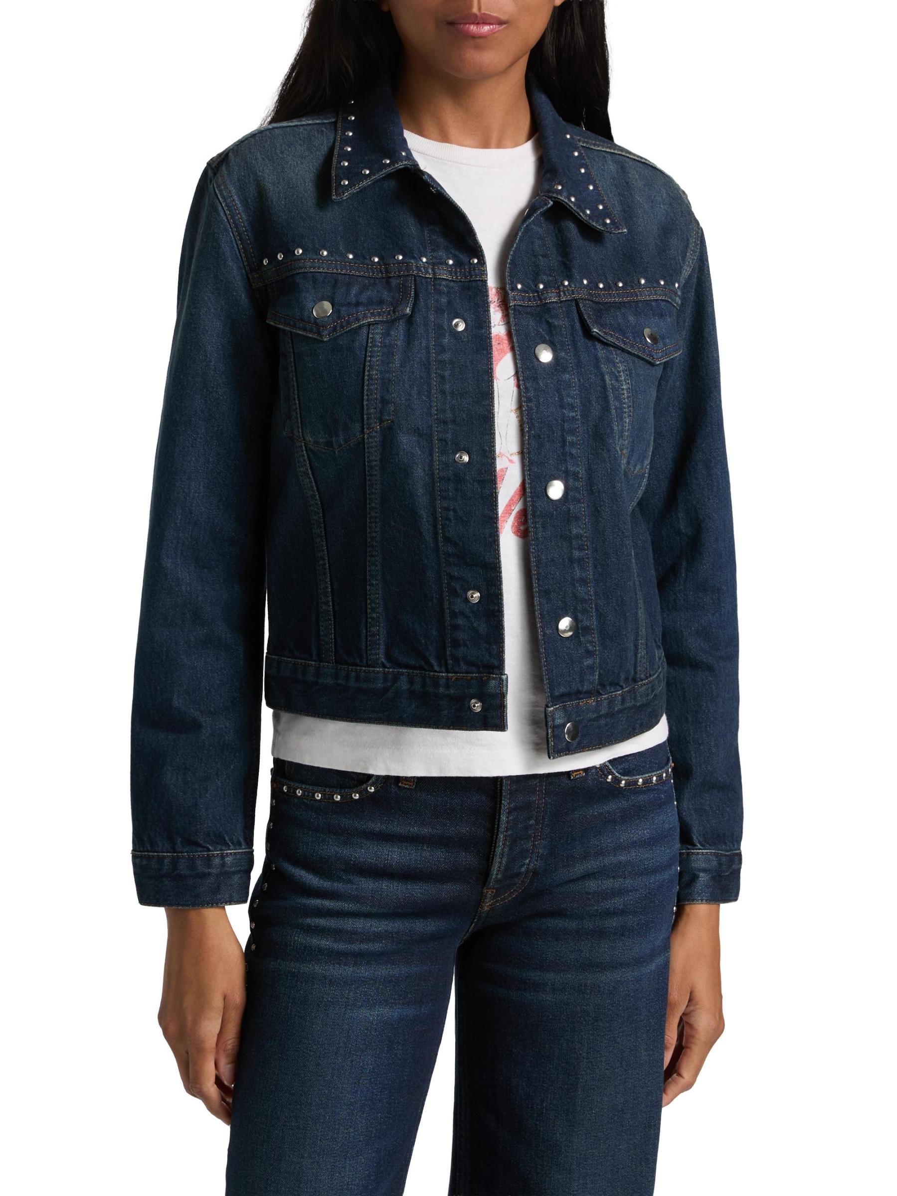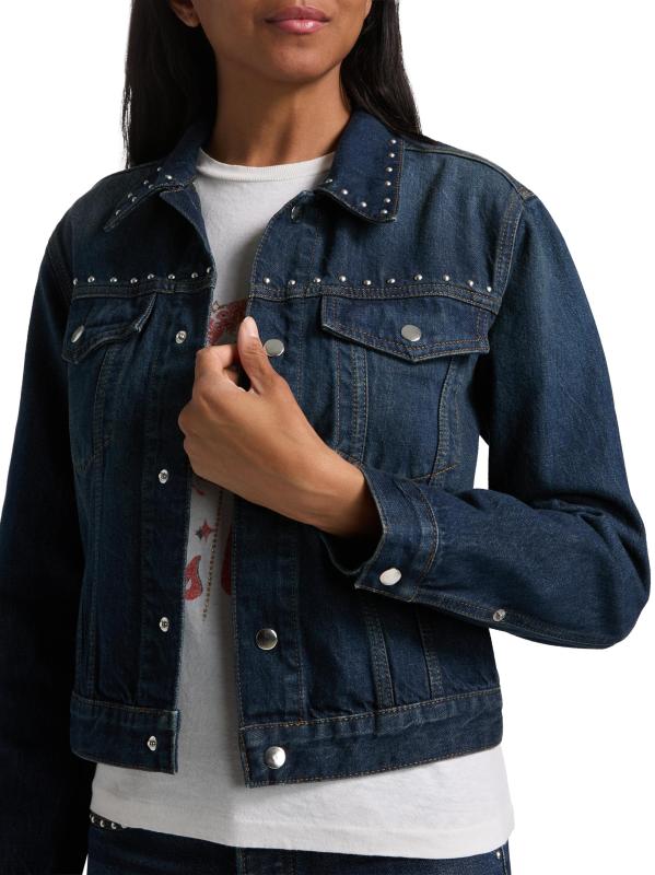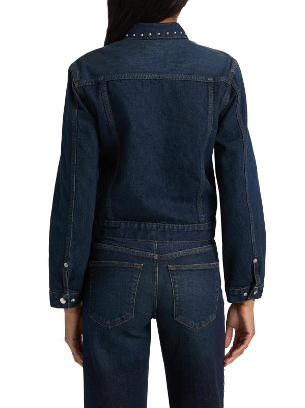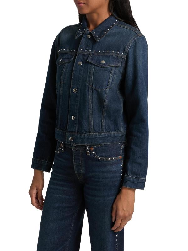 Crafted of cotton, Re/done's Baby denim trucker jacket is cut in a cropped silhouette featuring silvertone studded detailing.