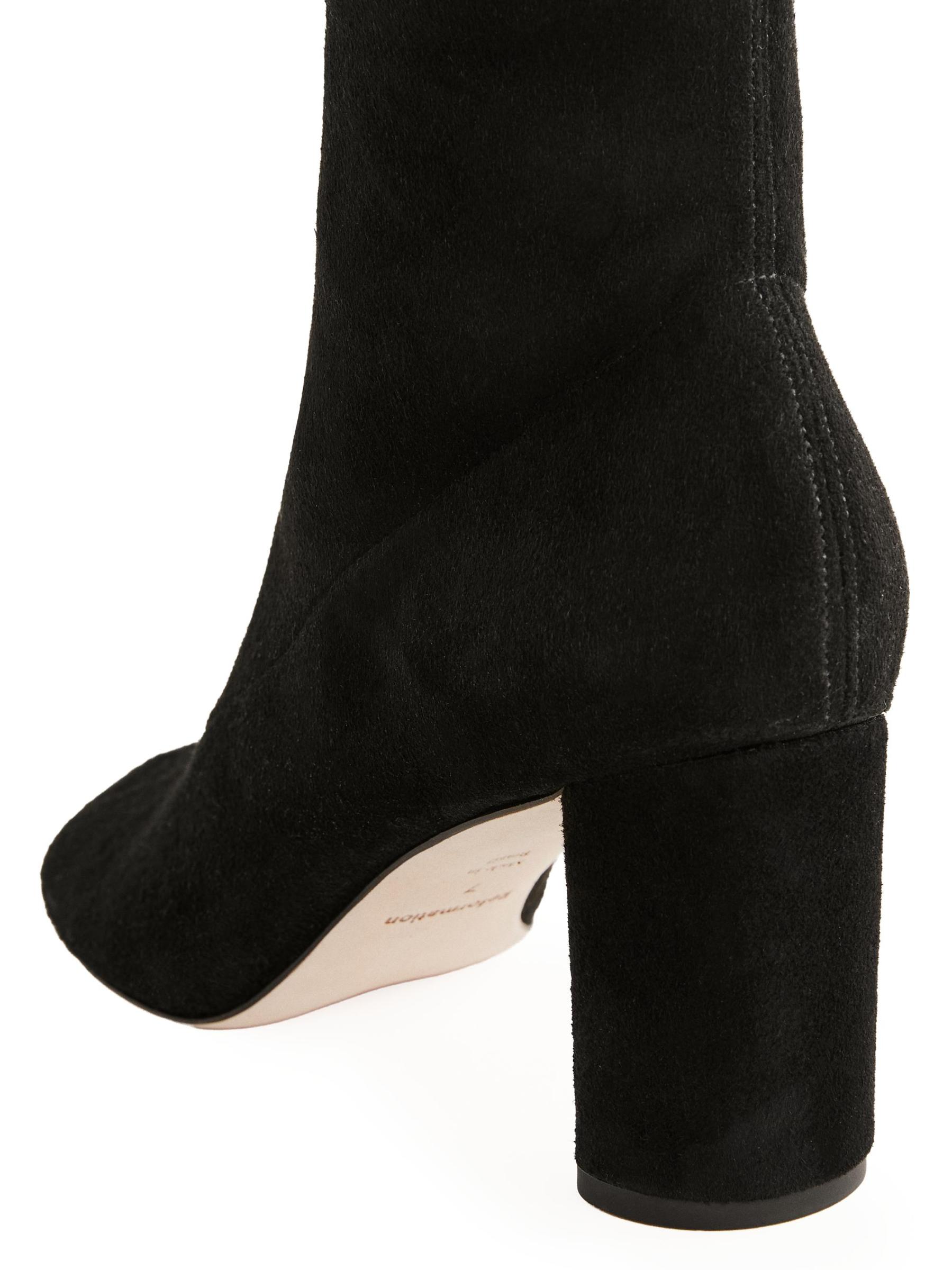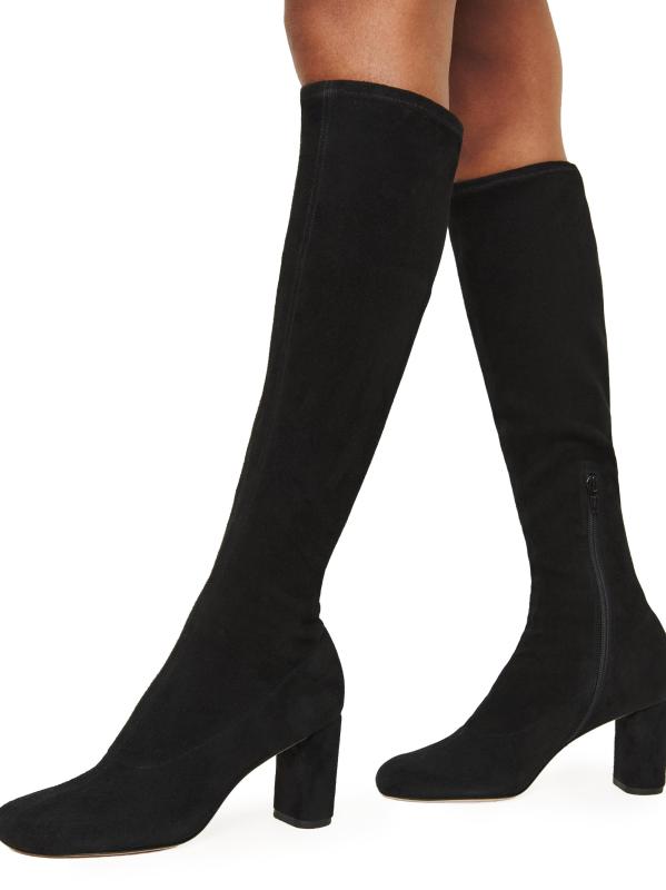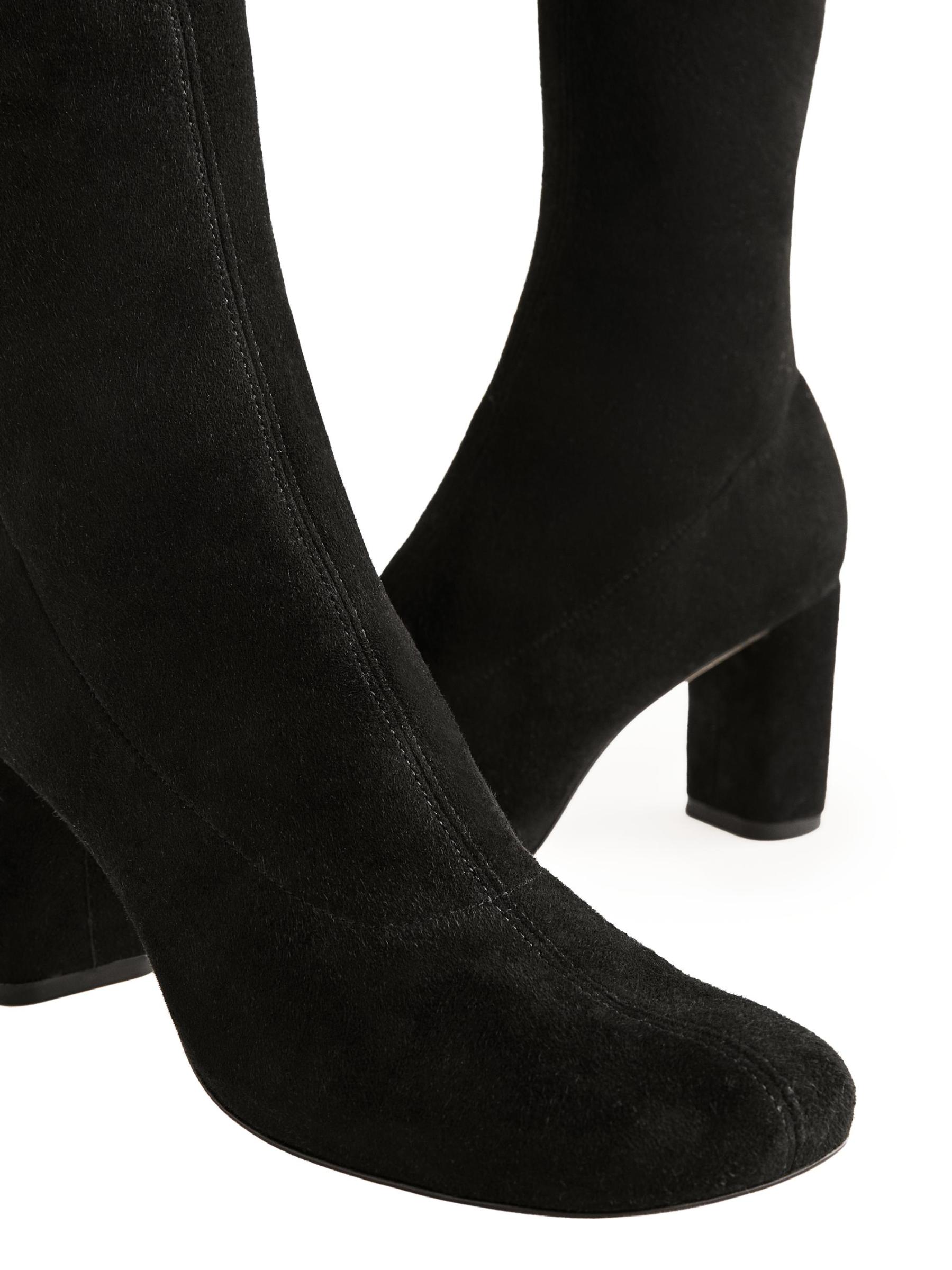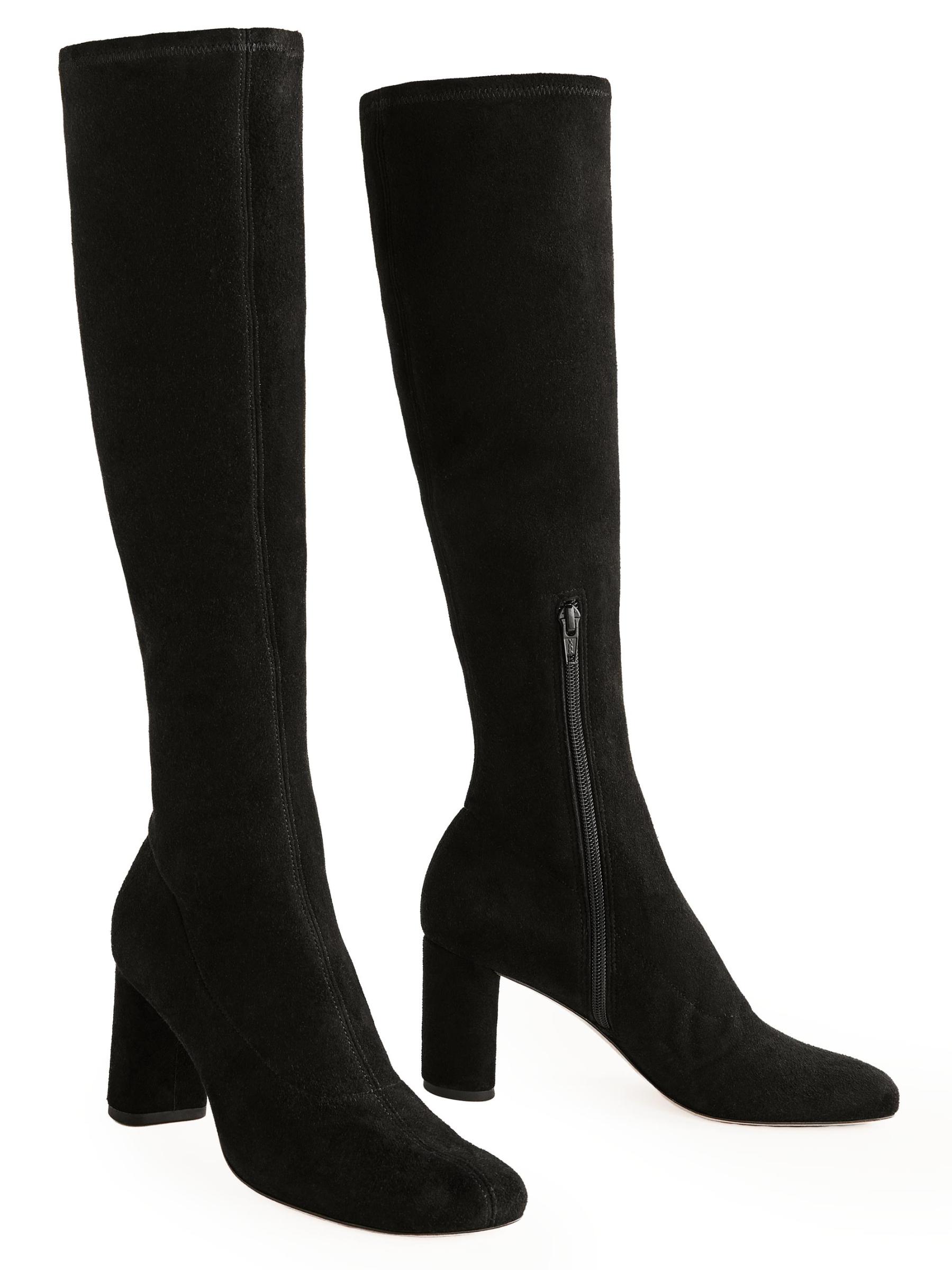 These Belinda boots from Reformation are crafted of suede and are set on a block heel.