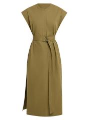 This structured midi-dress from Argent, crafted of cotton twill, is designed with defined topstitching, a round neck, and a waist-defining D-ring belt.