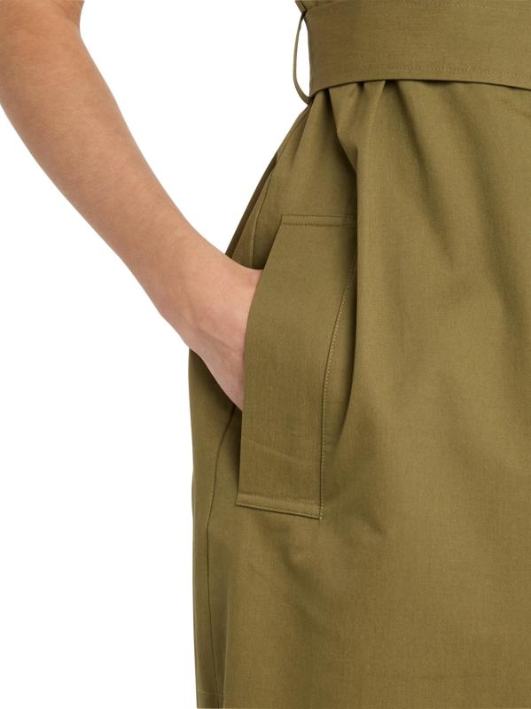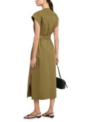 Belted Cap-Sleeve Cotton Twill Midi-Dress