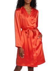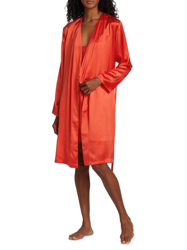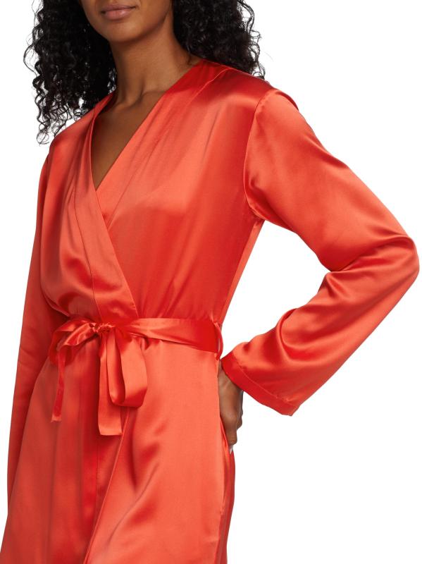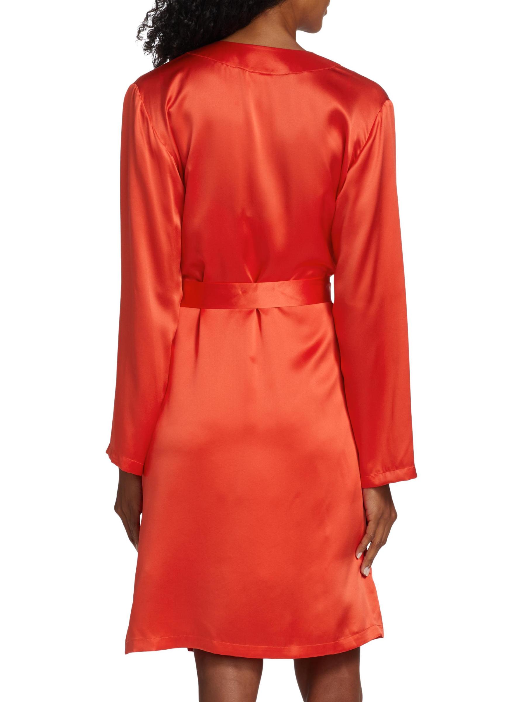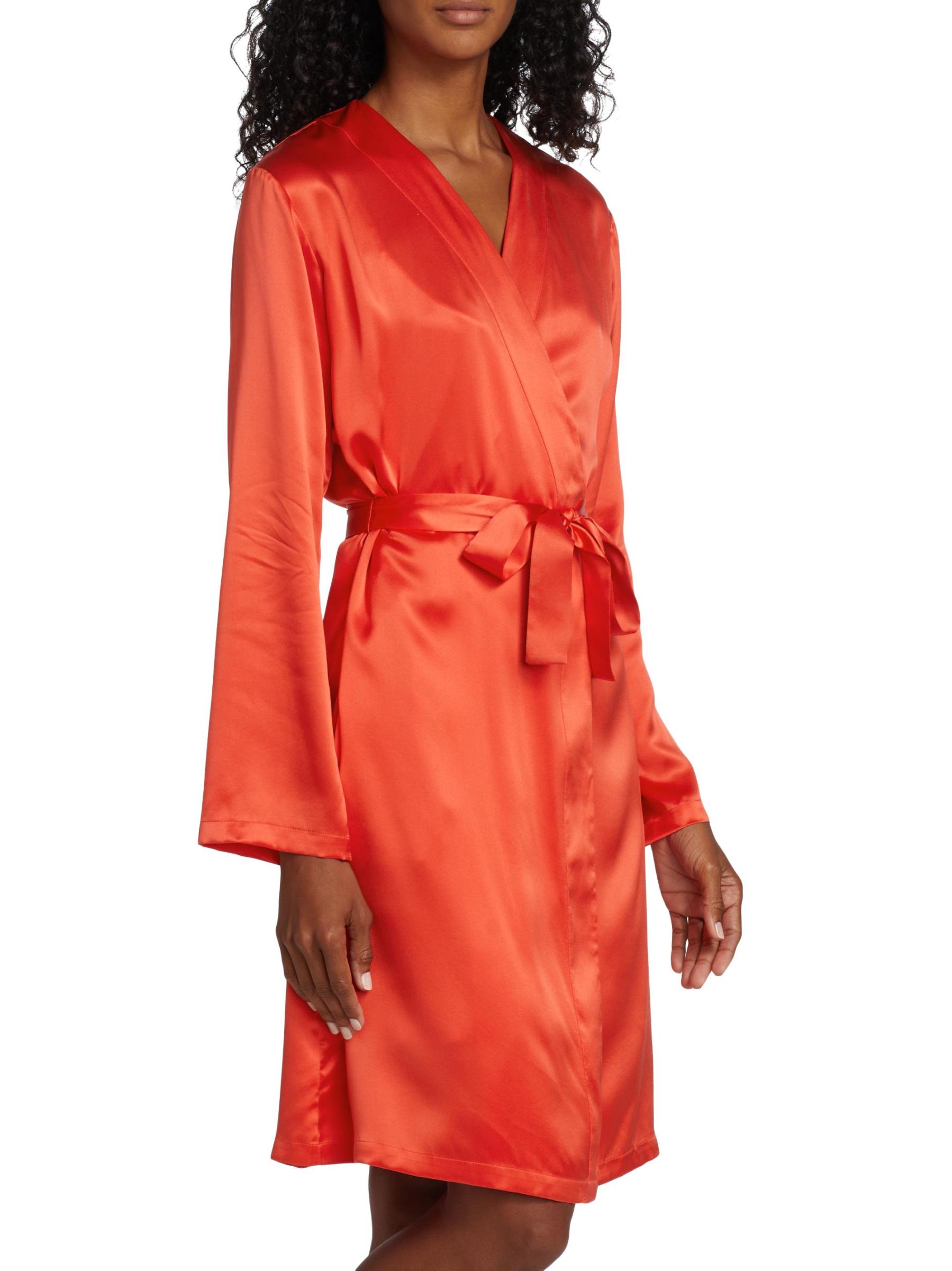 EXCLUSIVE. Crafted of lustrous silk satin, La Perla's belted short robe features a wrap silhouette with a surplice neck and long sleeves.Surplice neck Long sleeves Removable self belt 100% Silk Dry clean Imported