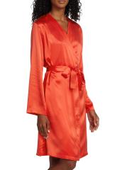 EXCLUSIVE. Crafted of lustrous silk satin, La Perla's belted short robe features a wrap silhouette with a surplice neck and long sleeves.