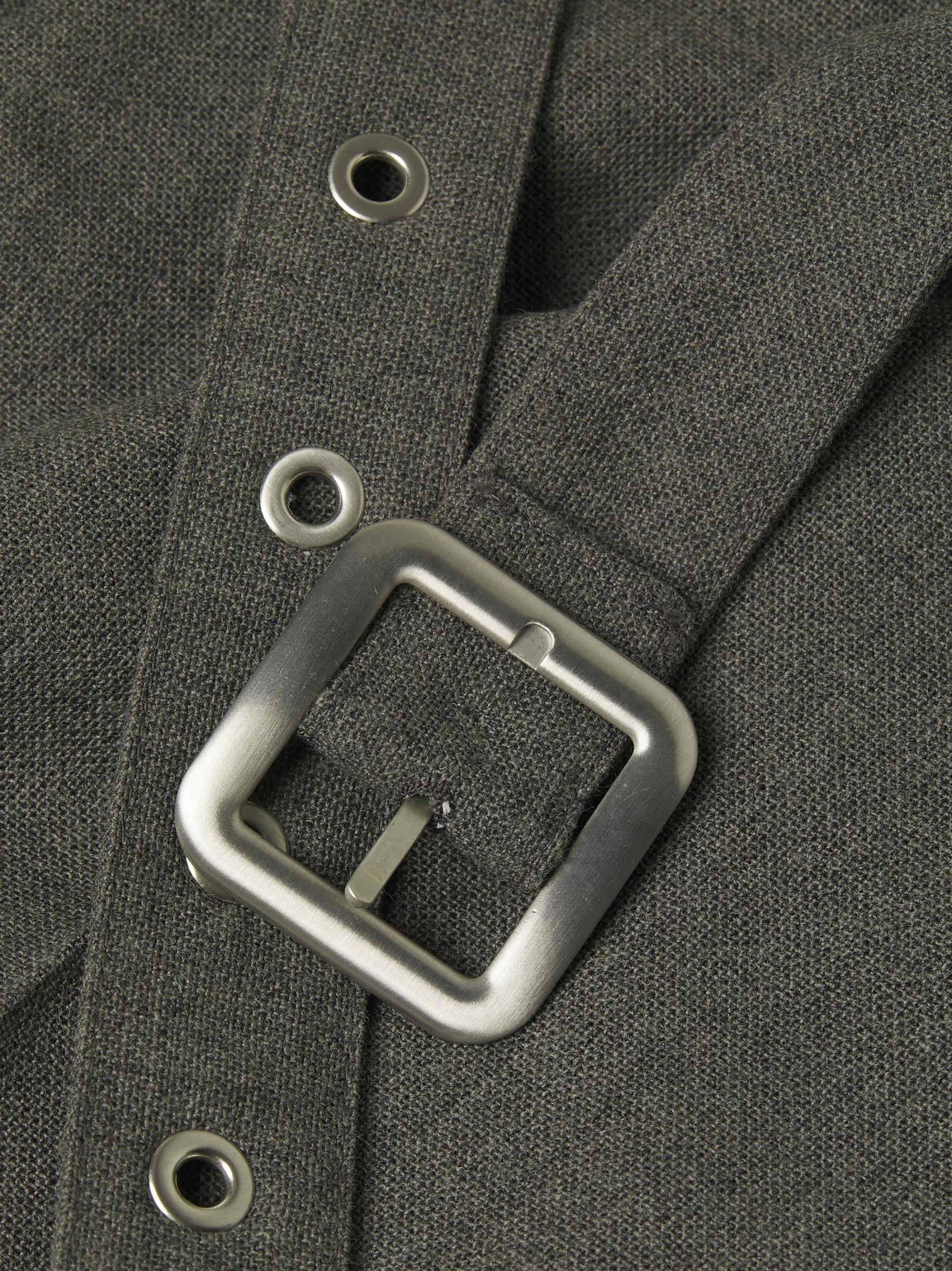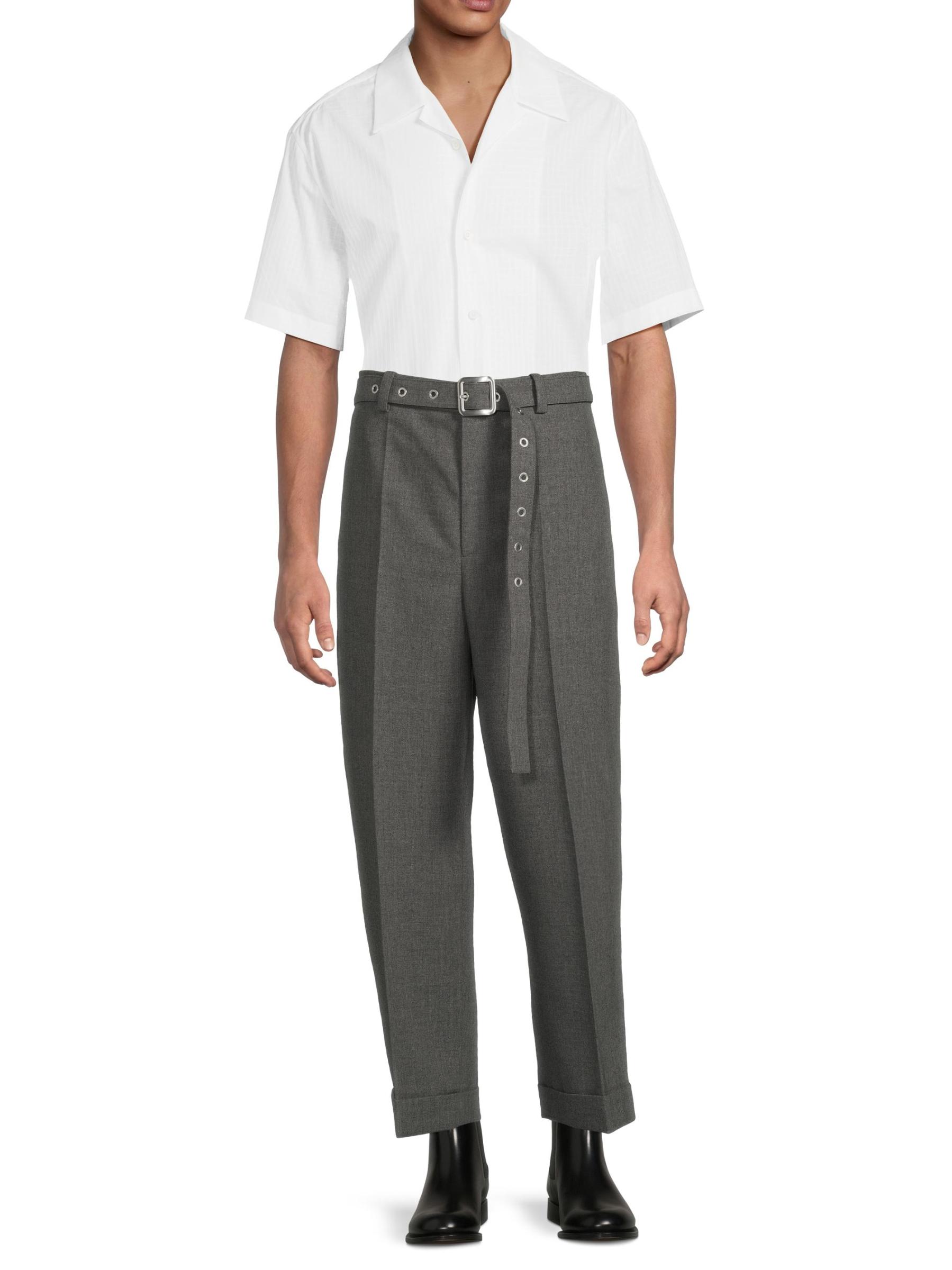 Crafted of wool canvas, these Jil Sander trousers are cut in a straight-leg silhouette with rolled cuffs. A removable D-ring belt with silvertone grommets lends a modern twist to this pair.