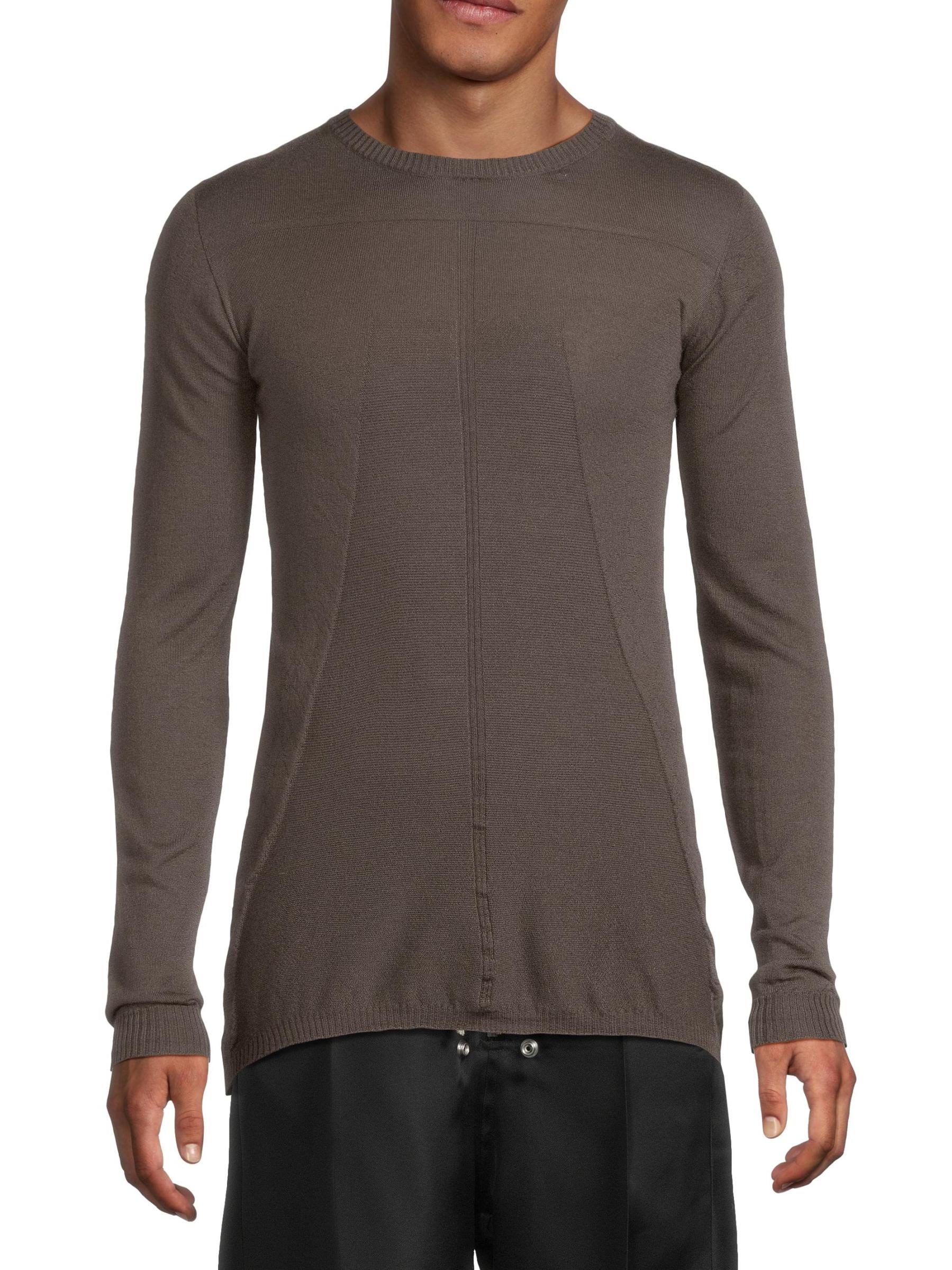 This Biker Level sweater from Rick Owens is crafted of cashmere with subtle linear embroidery. Rib-knit trim lends added shape to this style.Crewneck Long sleeves Rib-knit trim Pulls over 100% cashmere Hand wash Made in Italy