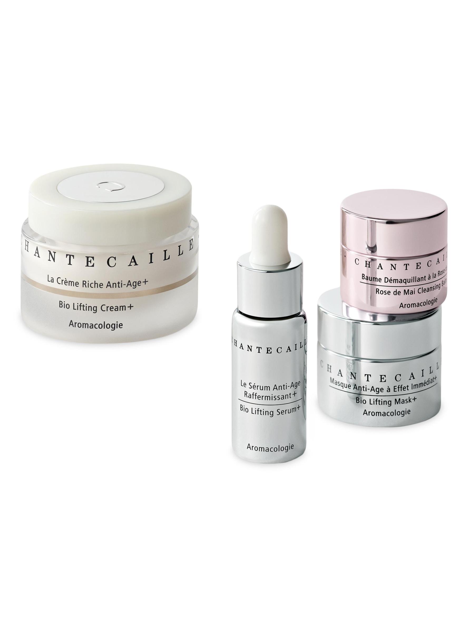 Featuring a complete skincare routine, this Chantecaille set contains a full-size Bio Lifting Cream+ and deluxe minis of Rose de Mai Cleansing Balm, Bio Lifting Serum+, and Bio Lifting Mask+. Made in Switzerland.
