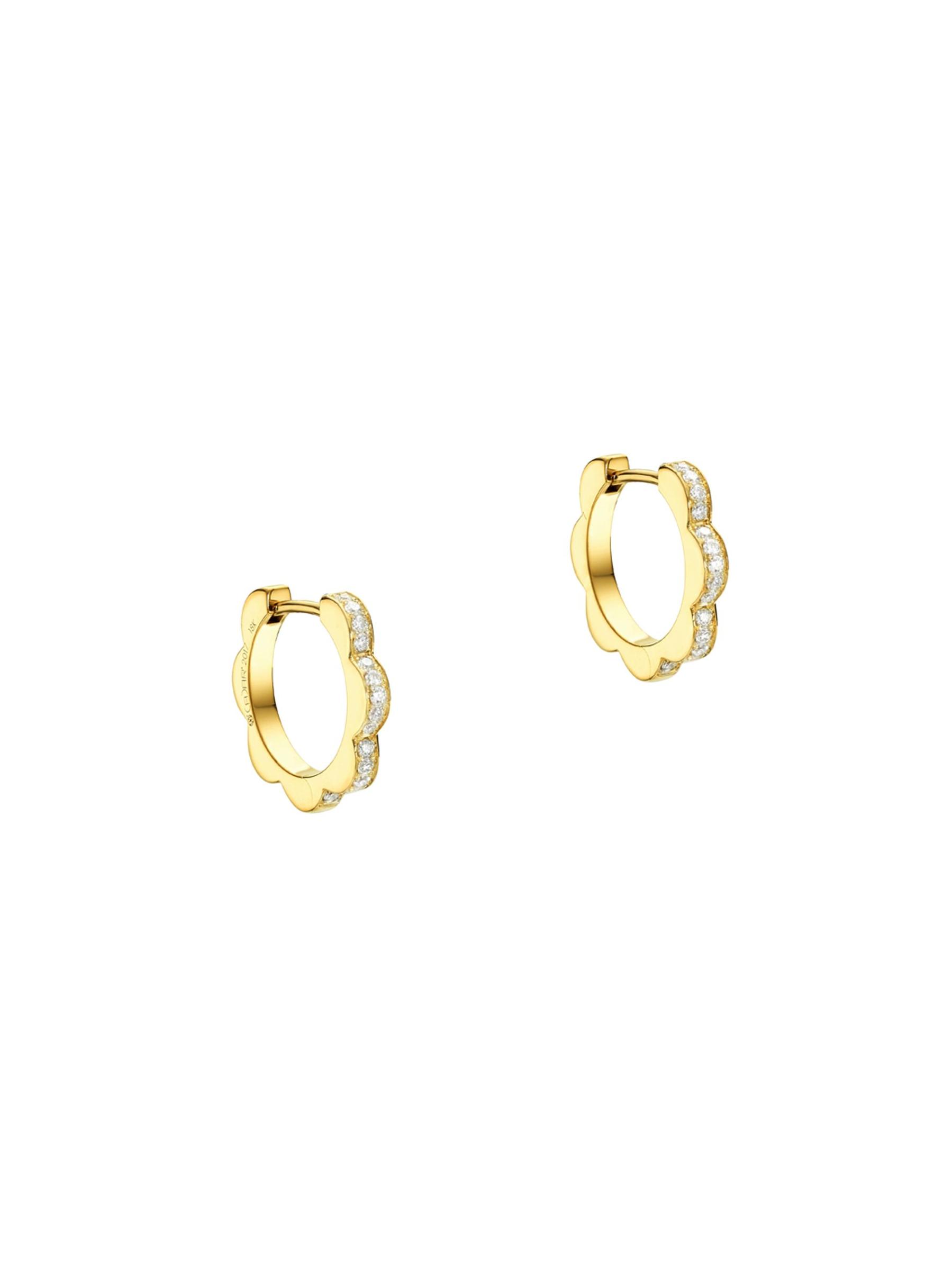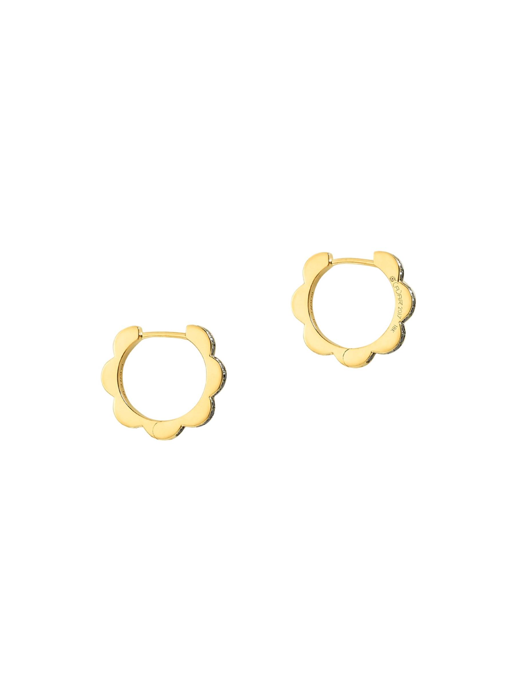 From the Bloom Collection. Petite scalloped gold hoops are edged with shimmering diamonds, adding a hint of sparkle and glamour to your lobes.Black diamonds, 0.23 tcw White diamonds, 0.22 tcw 18K yellow gold Hinge back Made in Portugal