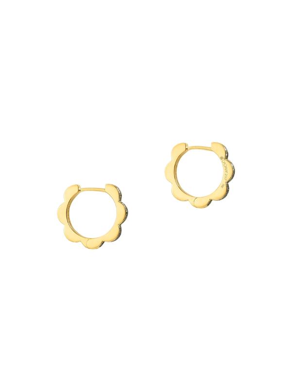 From the Bloom Collection. Petite scalloped gold hoops are edged with shimmering diamonds, adding a hint of sparkle and glamour to your lobes.