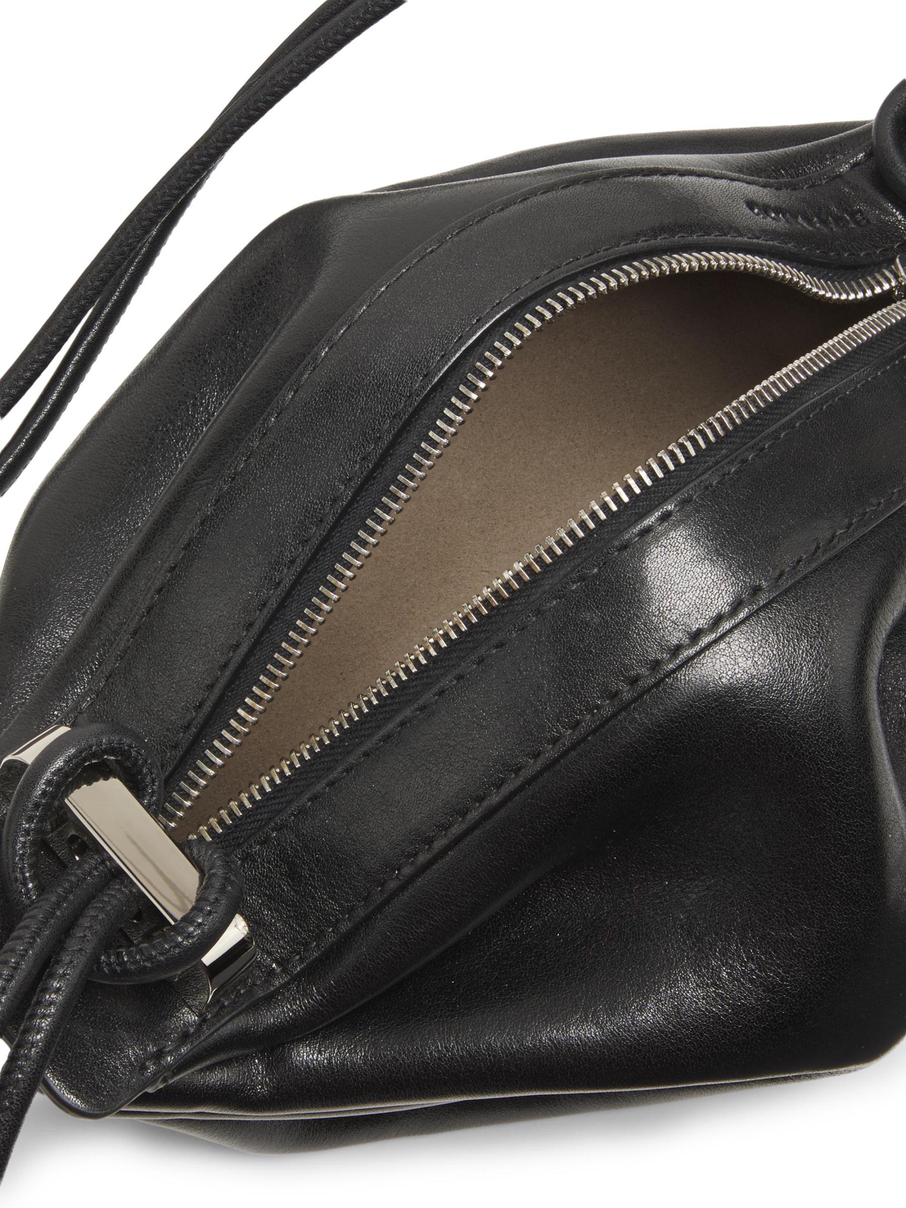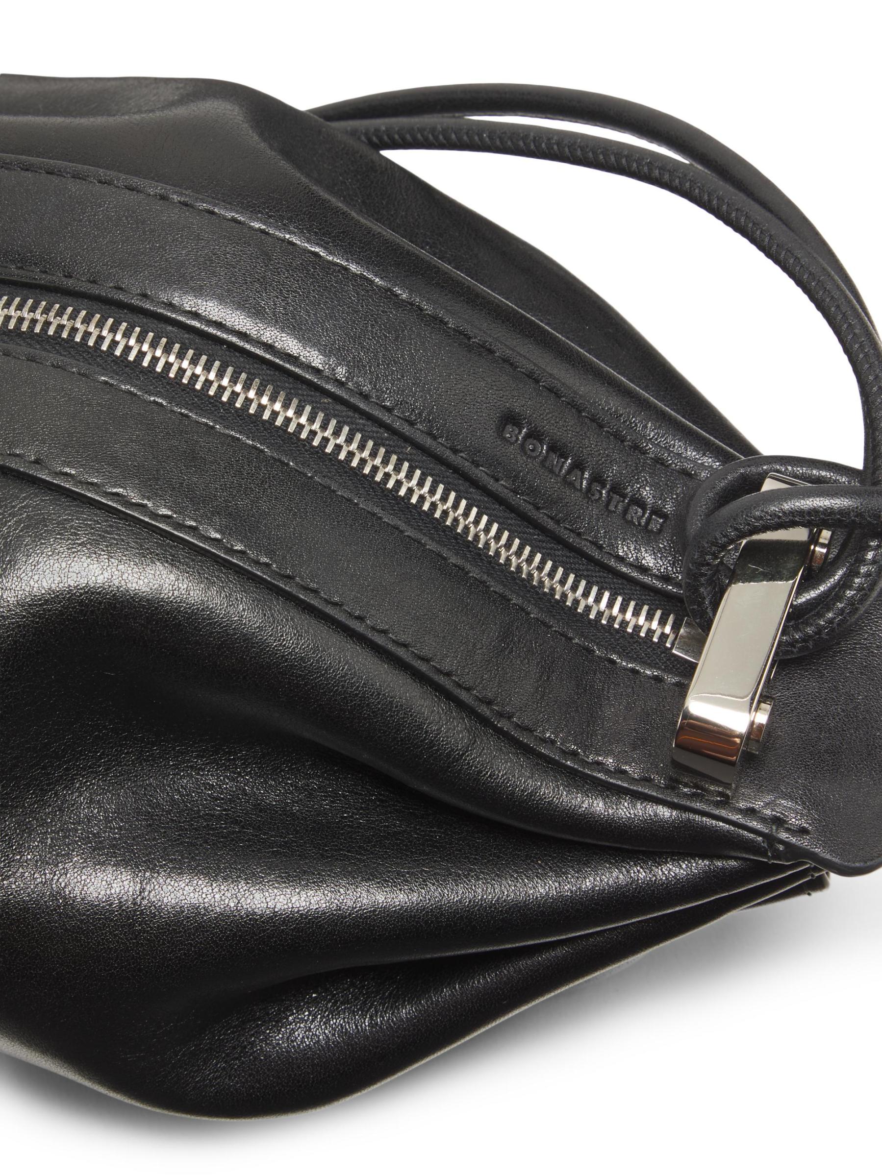 Inspired by the shape of traditional wrapped candy, BONASTRE's Bon-Bon crossbody bag is crafted of supple leather.
