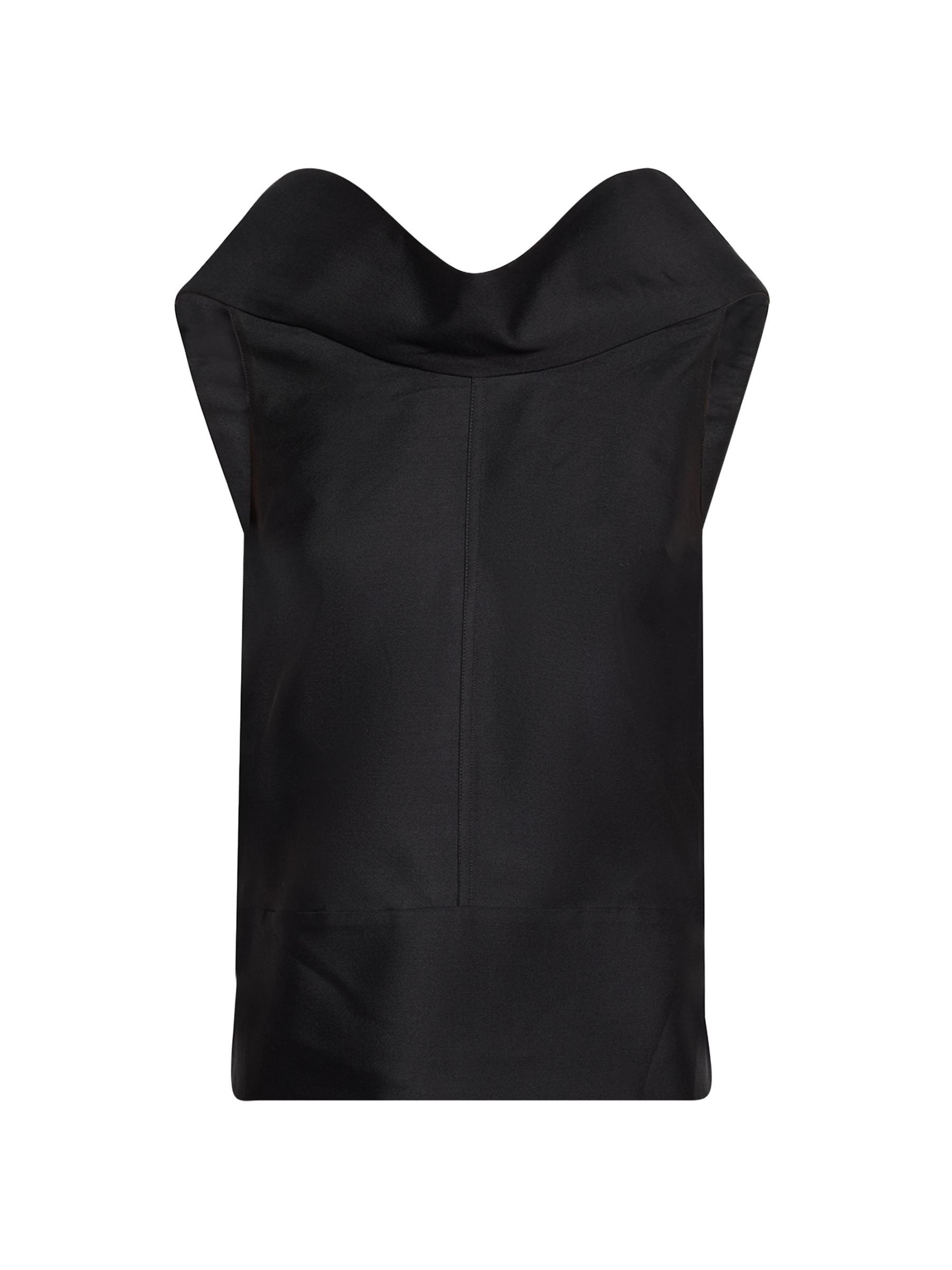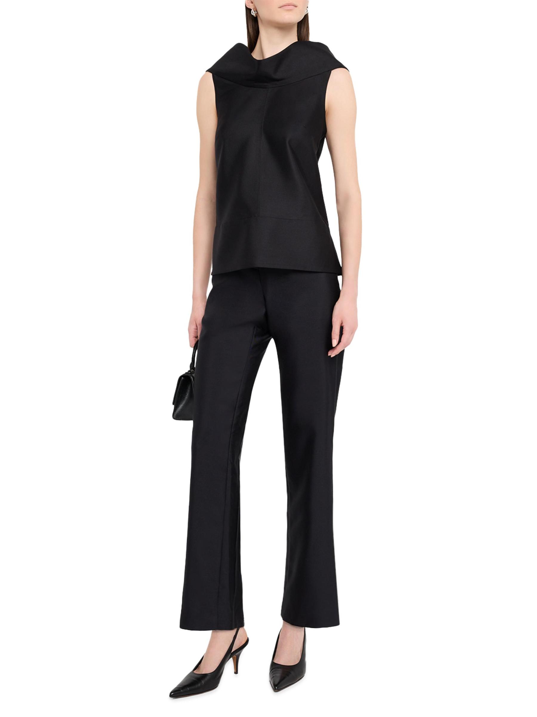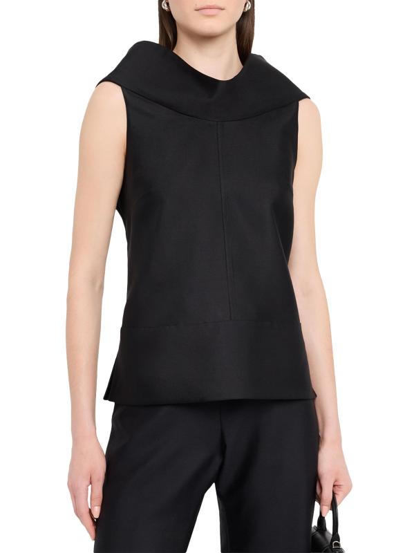 Crafted of wool and silk, this Brandon Maxwell's Bowie sleeveless top is styled with a draped collar and side slits.