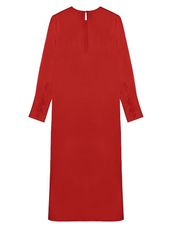 Bruna Long-Sleeve Silk Shift Midi-Dress