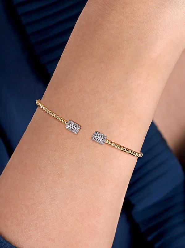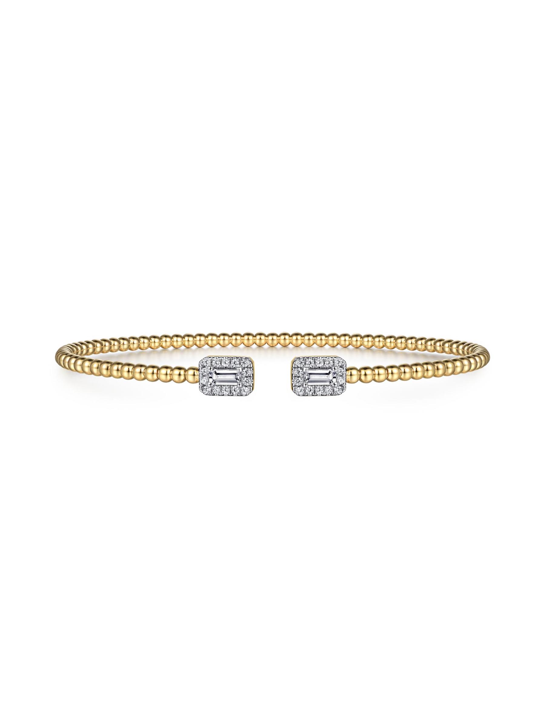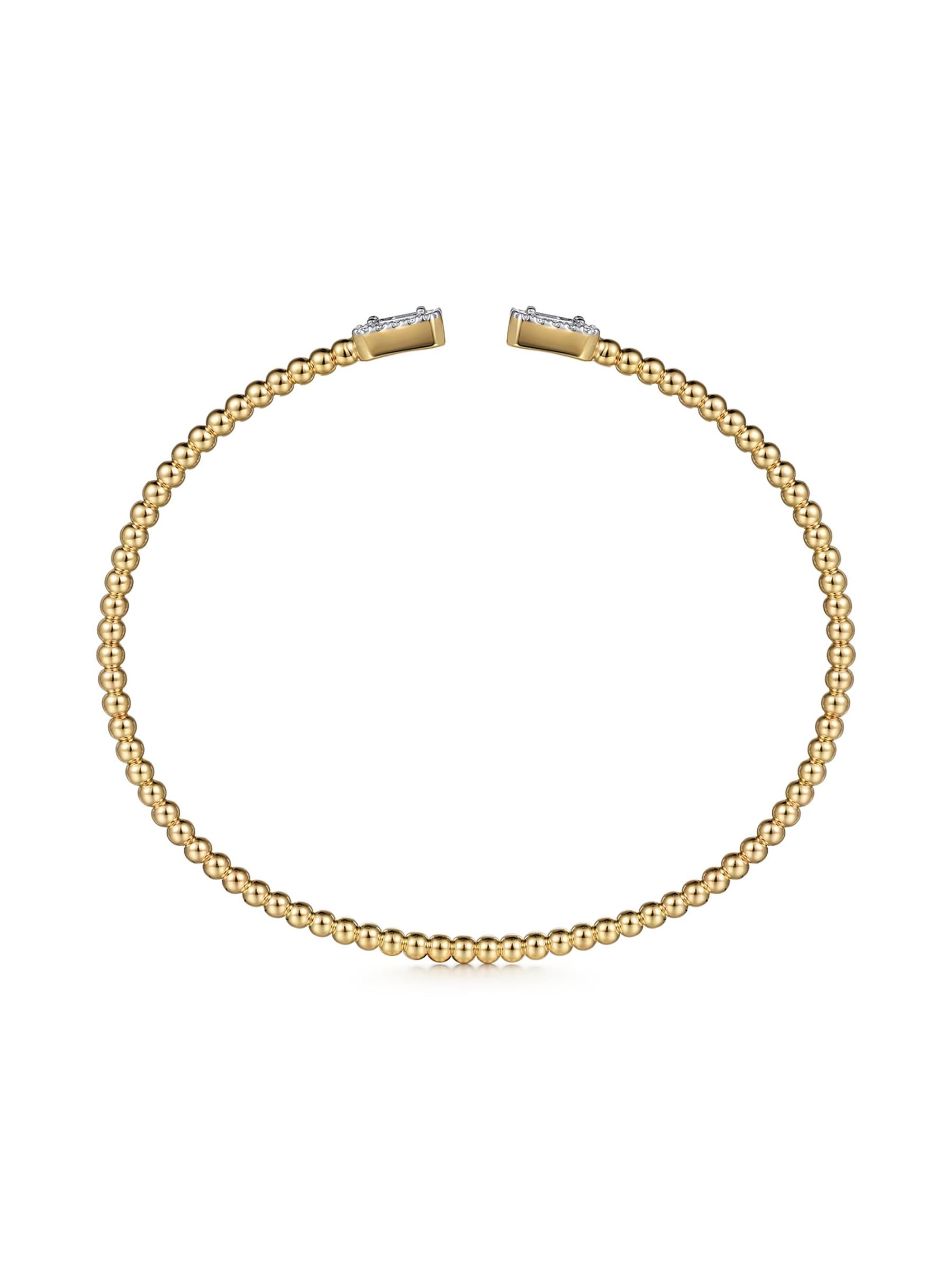 Co's cuff is tipped with shimmering emerald-cut and pavé diamonds. This piece is inspired by the Balinese art of persuasion with orbs that evoke strength, resilience, and natural elegance.Diamonds, 0.30 tcw Diamond color grade: G-H Diamond clarity grade: SI 14K yellow or white gold Slips on Imported