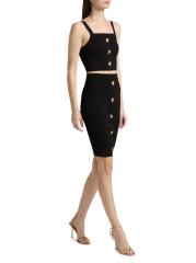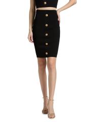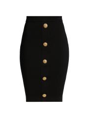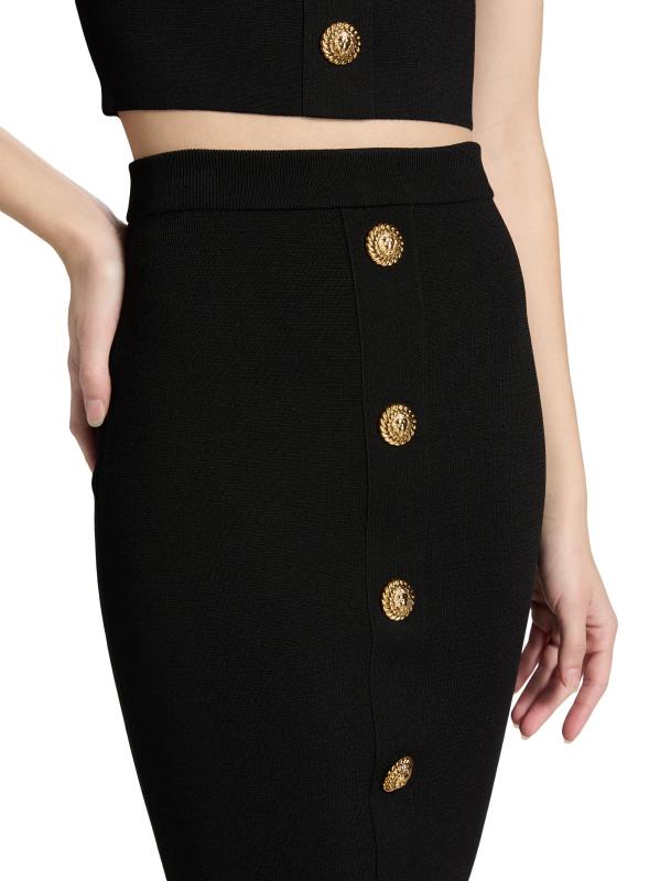 Made in Italy, this Balmain fitted skirt is crafted of a compact knit, pairing stretch and shaping properties. This polished style, detailed with engraved goldtone buttons, is designed with a defined banded waist.