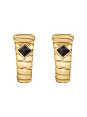 BVLGARI Tubogas 18K Yellow Gold Onyx Hoop Earrings