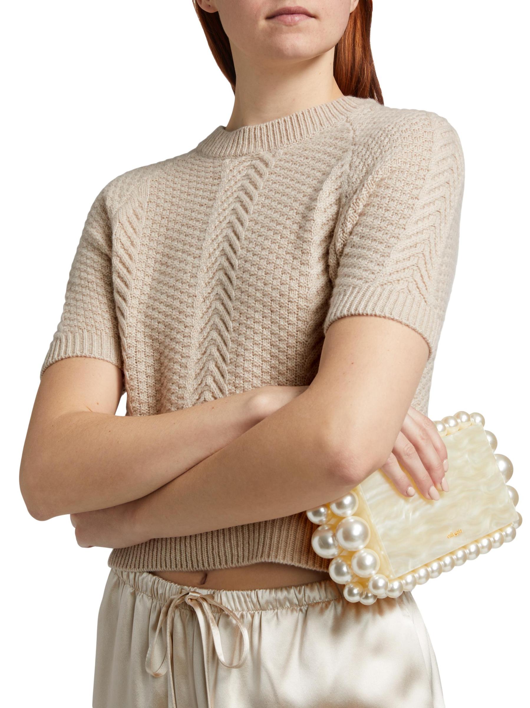 Cable-knit from soft cashmere, this sweater from SPRWMN is designed with a crewneck and short raglan sleeves.