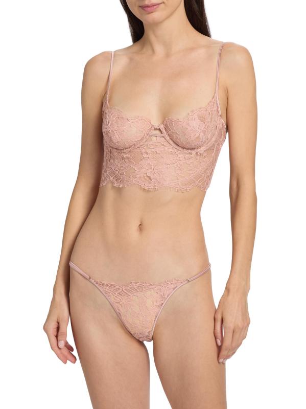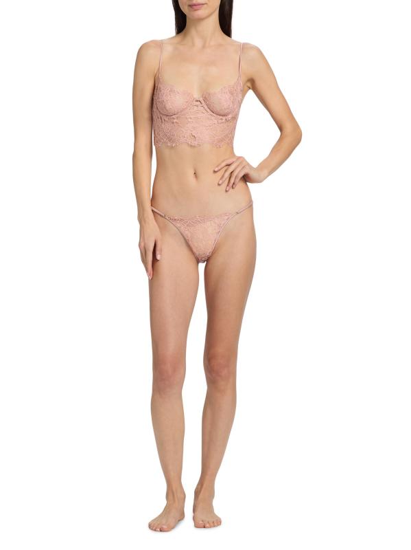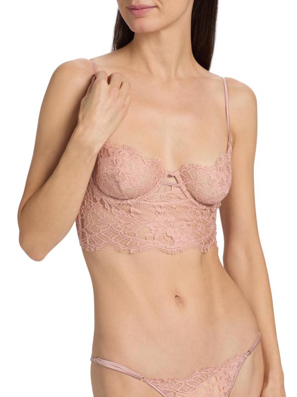 Detailed with a delicate lace design, Kiki de Montparnasse's Camille longling bra features underwire, adjustable straps, and soft cups.