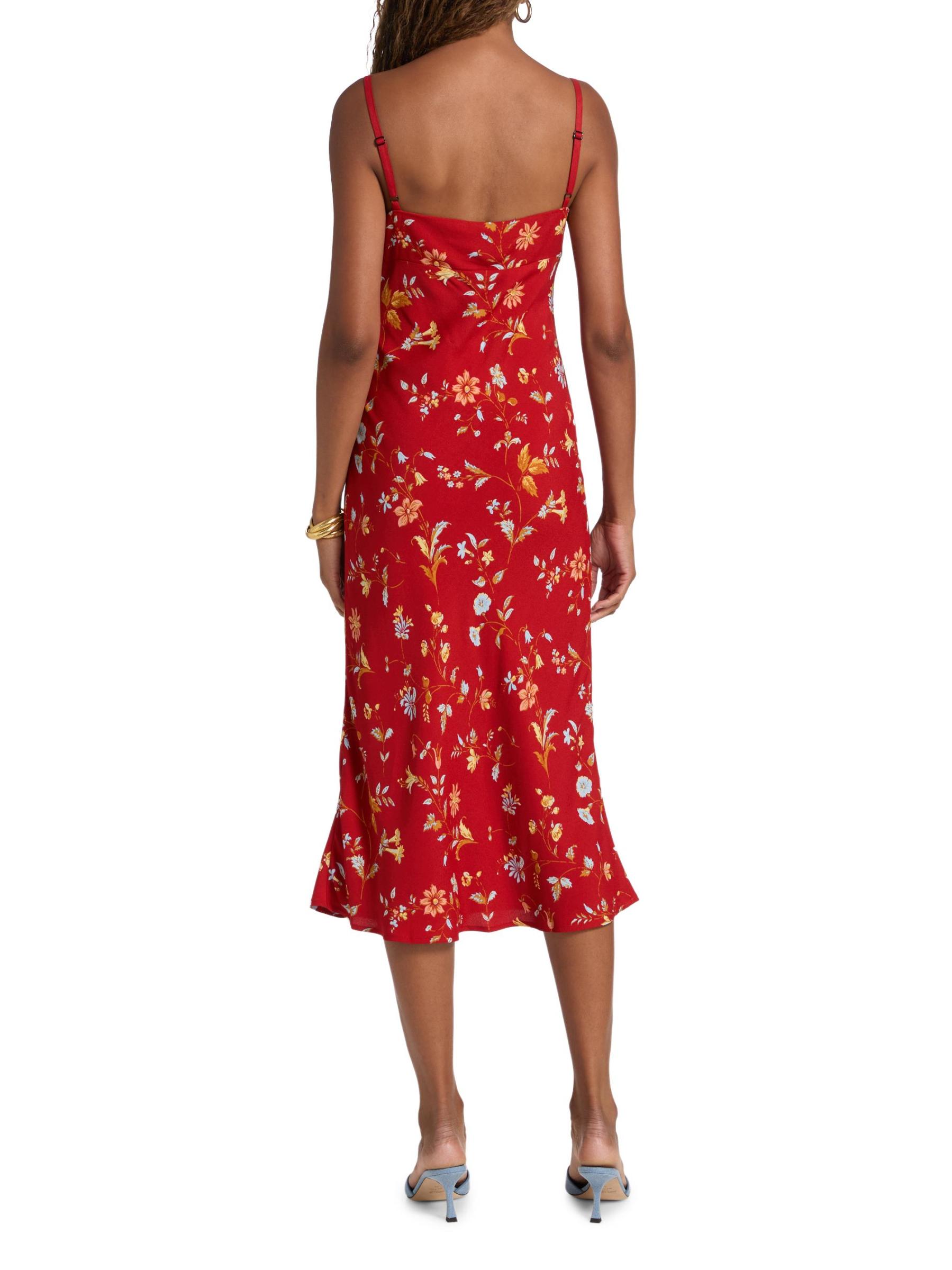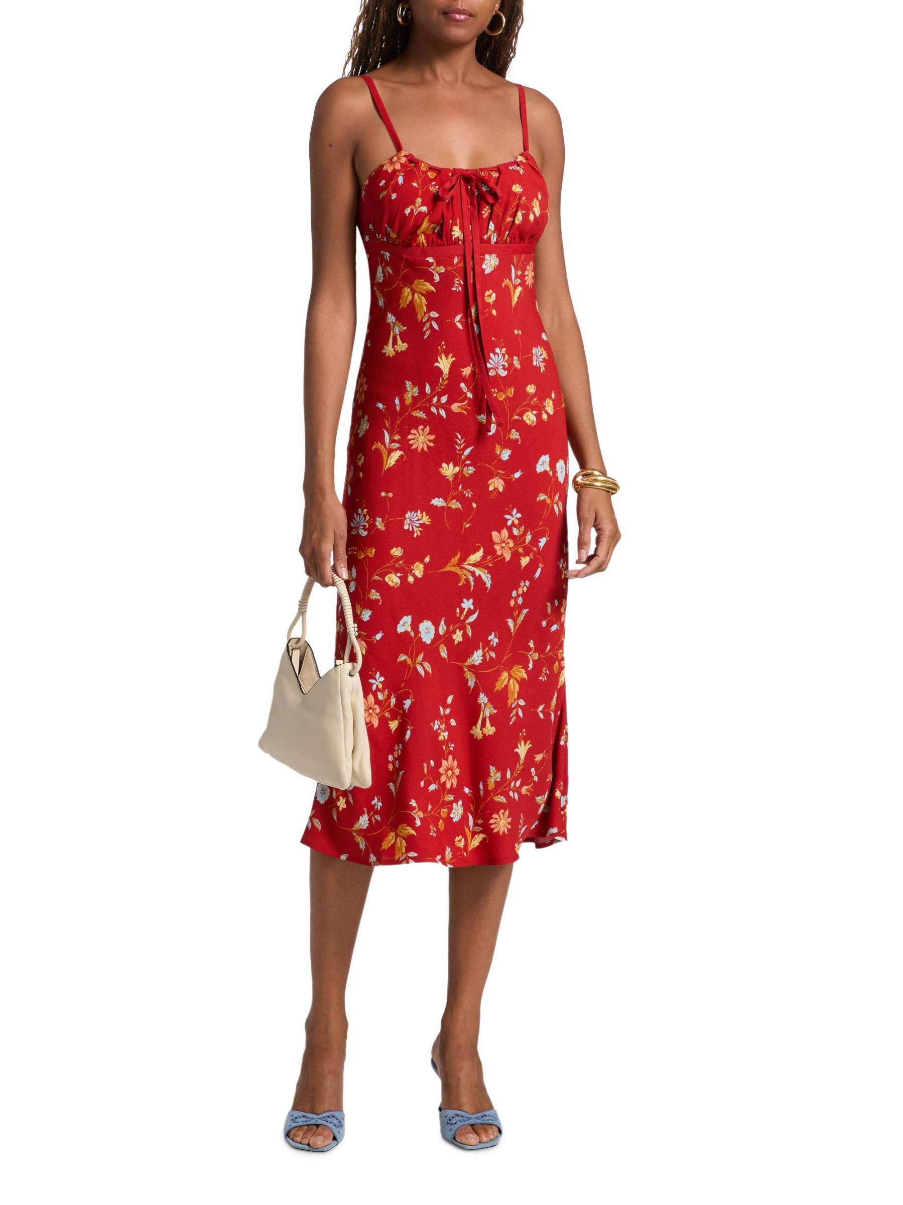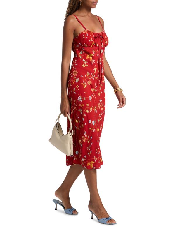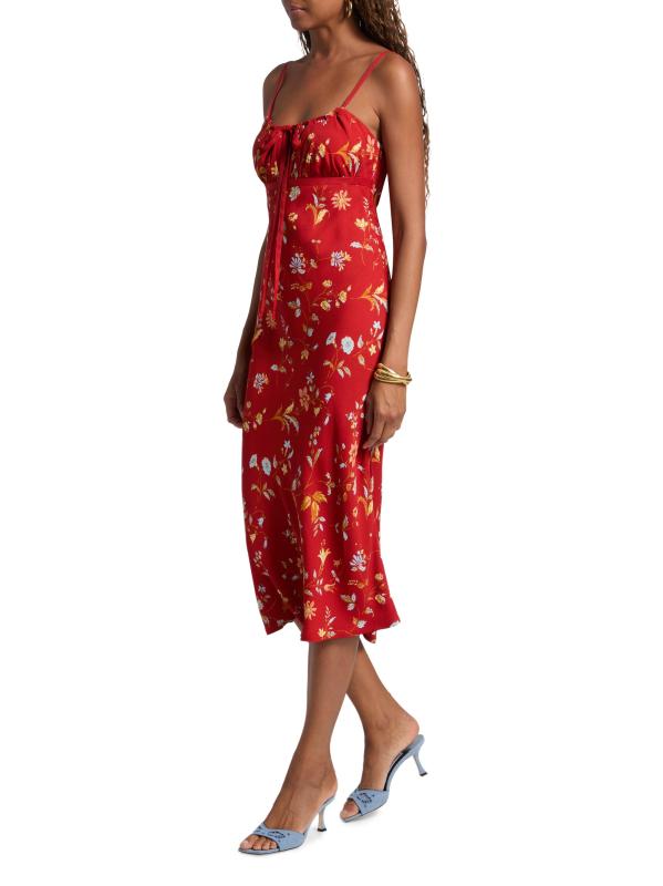 Reformation's Camira midi-dress is crafted of floral-print crepe and features a tie-front detail and adjustable straps.Made with responsibly sourced viscose Viscose was made with processes meeting rigorous chemical input standards during parts of the textile formation process that are less impactful on the environment and people. Scoopneck Adjustable straps Side zip closure 53% responsibly sourced viscose/47% responsibly sourced viscose Dry clean Made in USA