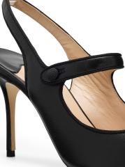Manolo Blahnik’s Camparisli Mary Jane slingback pumps are crafted of sleek leather with tonal grosgrain trim and a signature stiletto heel.