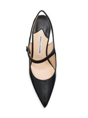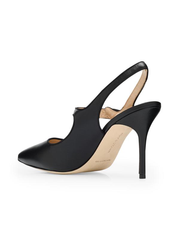 Manolo Blahnik’s Camparisli Mary Jane slingback pumps are crafted of sleek leather with tonal grosgrain trim and a signature stiletto heel.Point toe Snap closure Leather upper Leather lining Leather sole Made in Italy