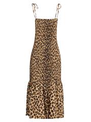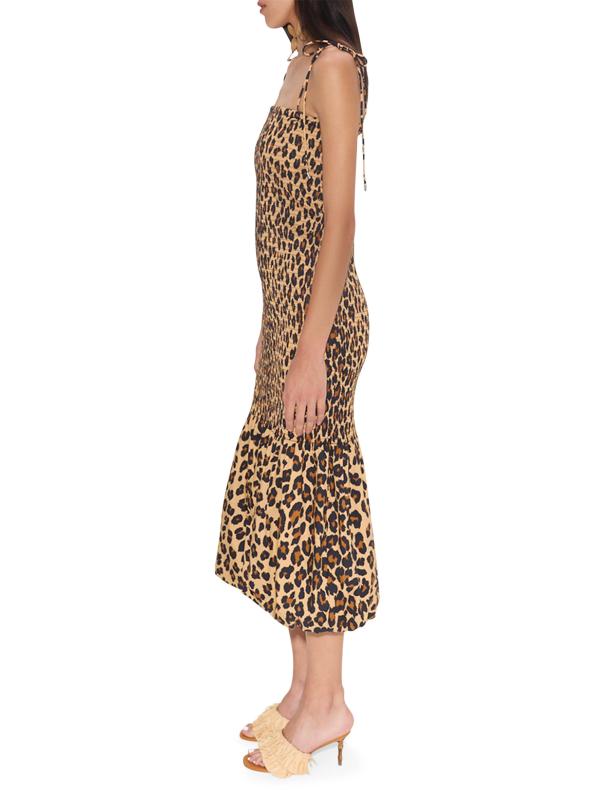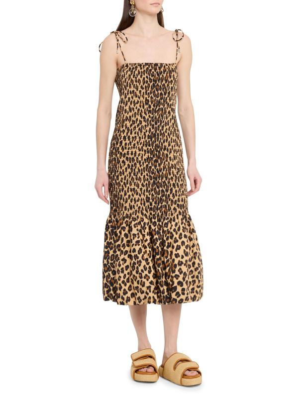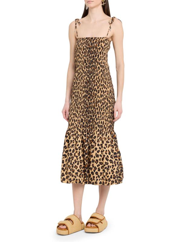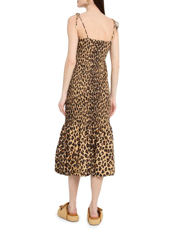 Canto Leopard Print Smocked Poplin Midi-Dress