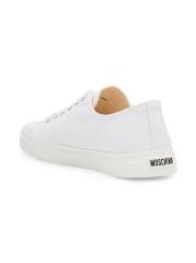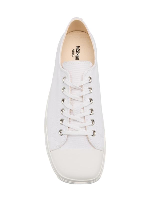 Carfted of cotton canvas, these Moschino low-top sneakers are styled with a squared cap toe and signature heel logo.