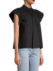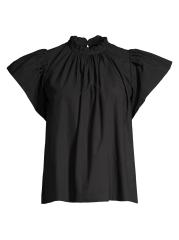 Cut in a boxy silhouette, Birds of Pardis' Carla cap-sleeve top is elevated by a ruffle band collar and pleated bodice.Ruffle band collar Cap sleeves Keyhole back button closure Pulls over 100% Cotton Machine wash Imported