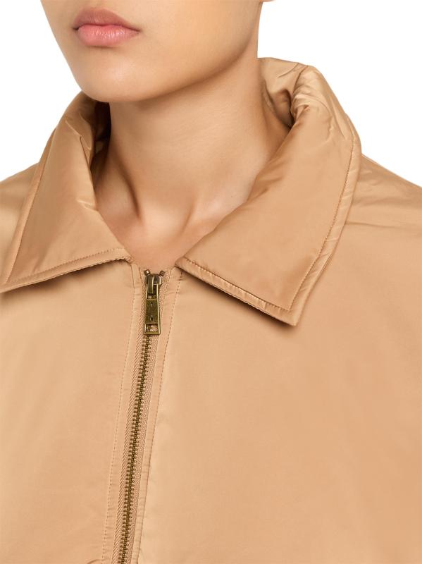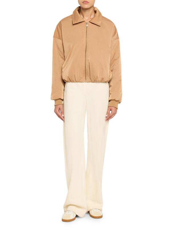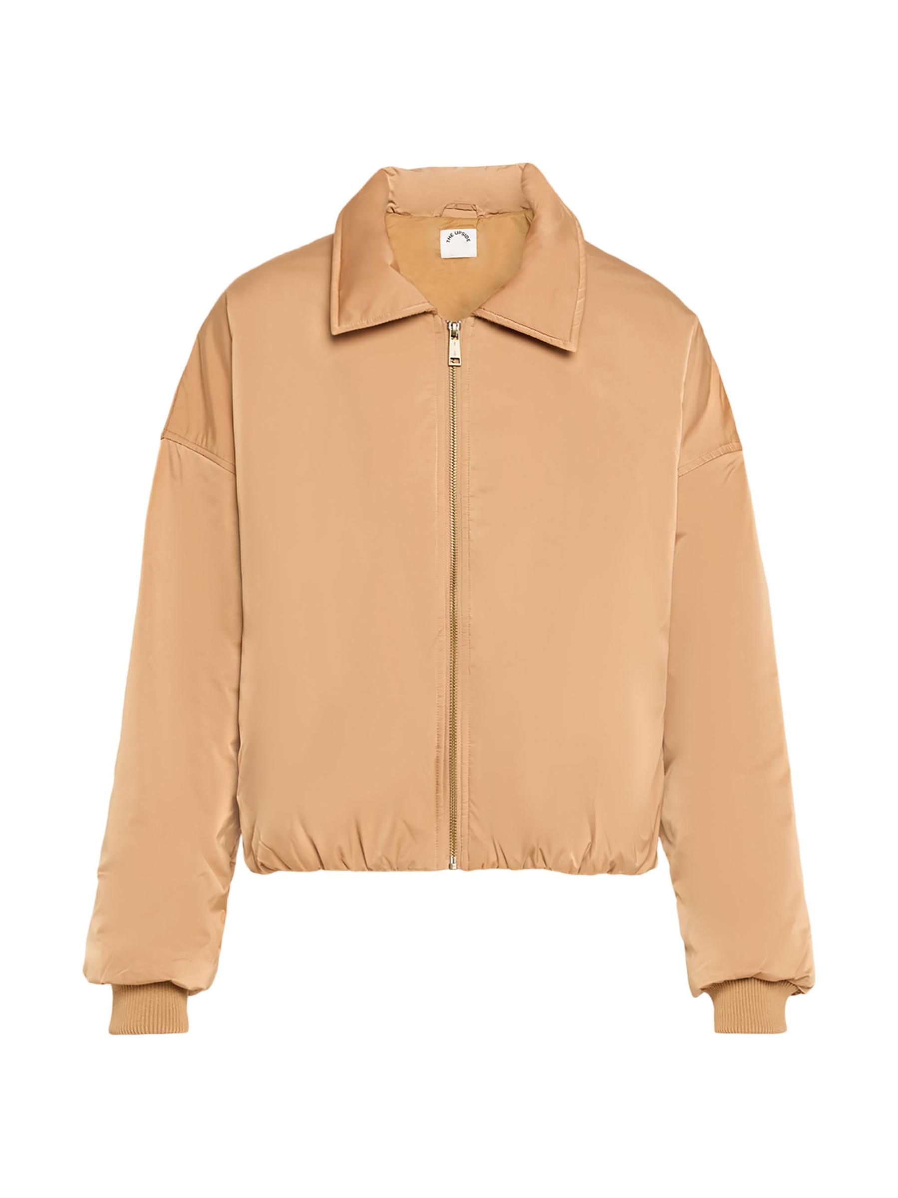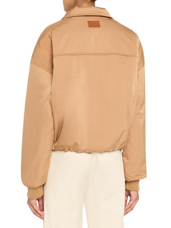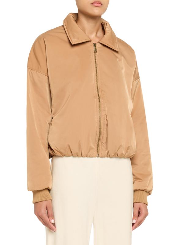 The Carlotta bomber jacket from The Upside is crafted of satin and cut in a blouson silhouette.Spread collar Long sleeves, rib-knit cuffs Side slip pockets Blouson bodice Gathered hem Front zip closure 100% polyester Dry clean Imported