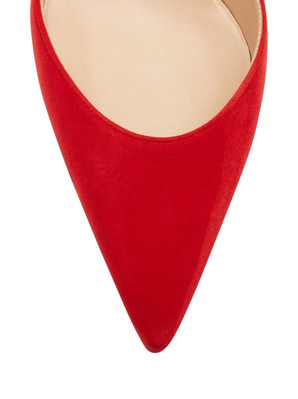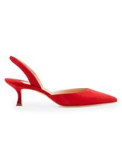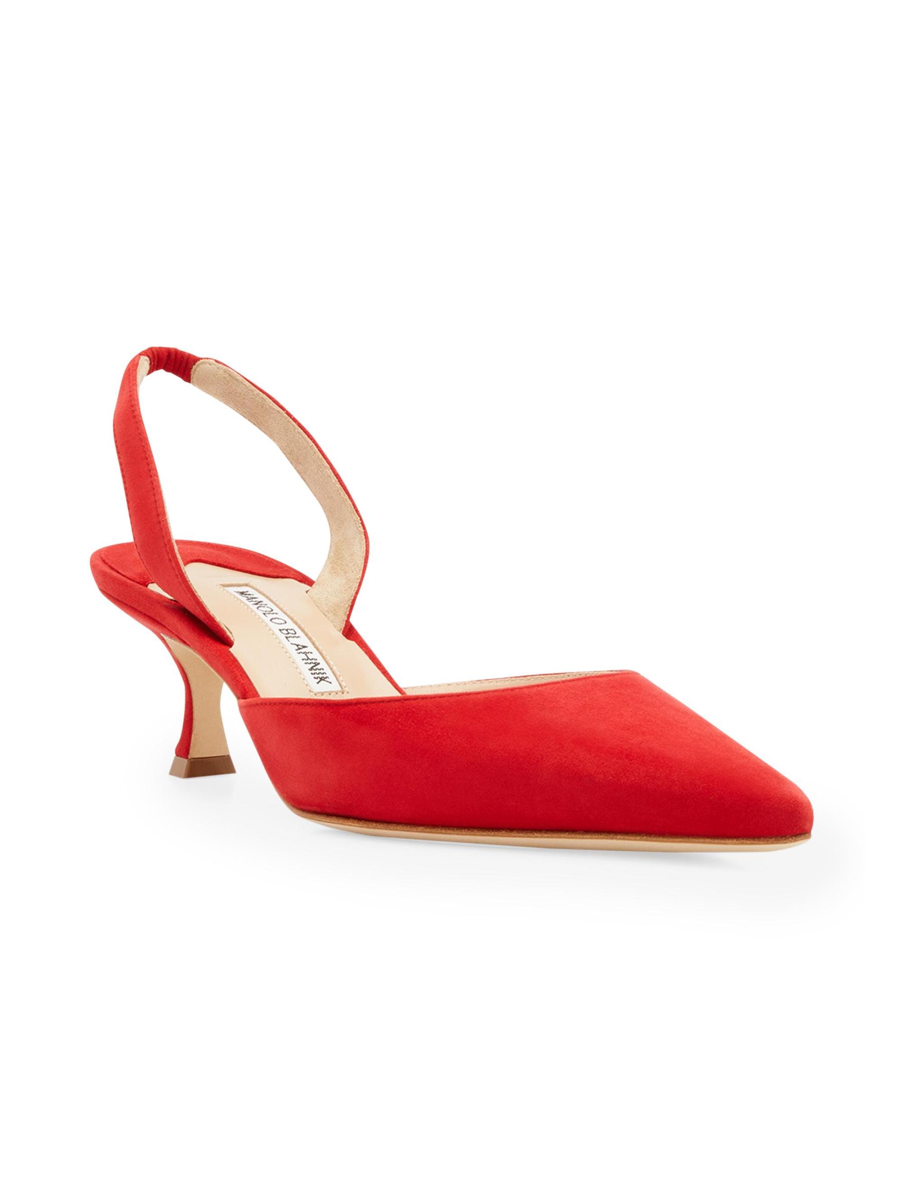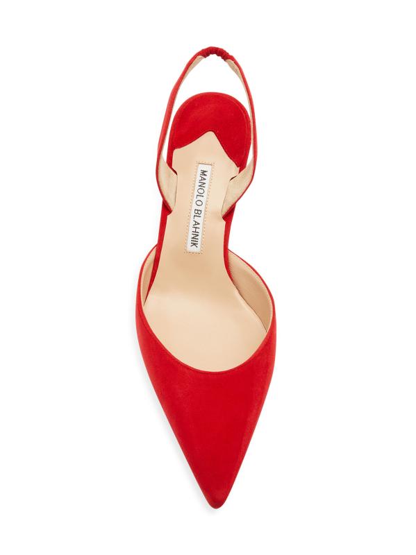 Manolo Blahnik’s Carolyne slingback pumps are crafted of soft suede and sit on a kitten heel.