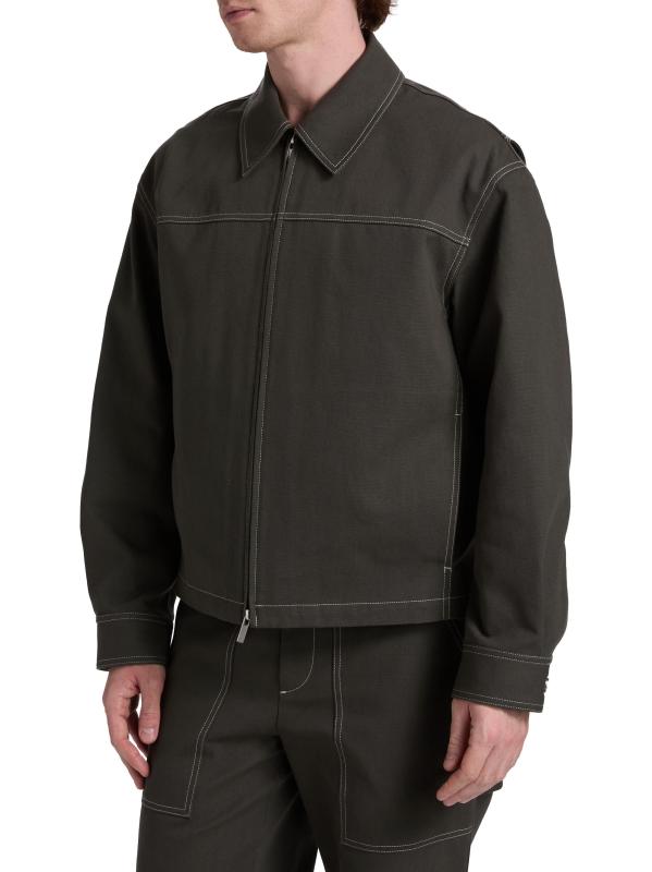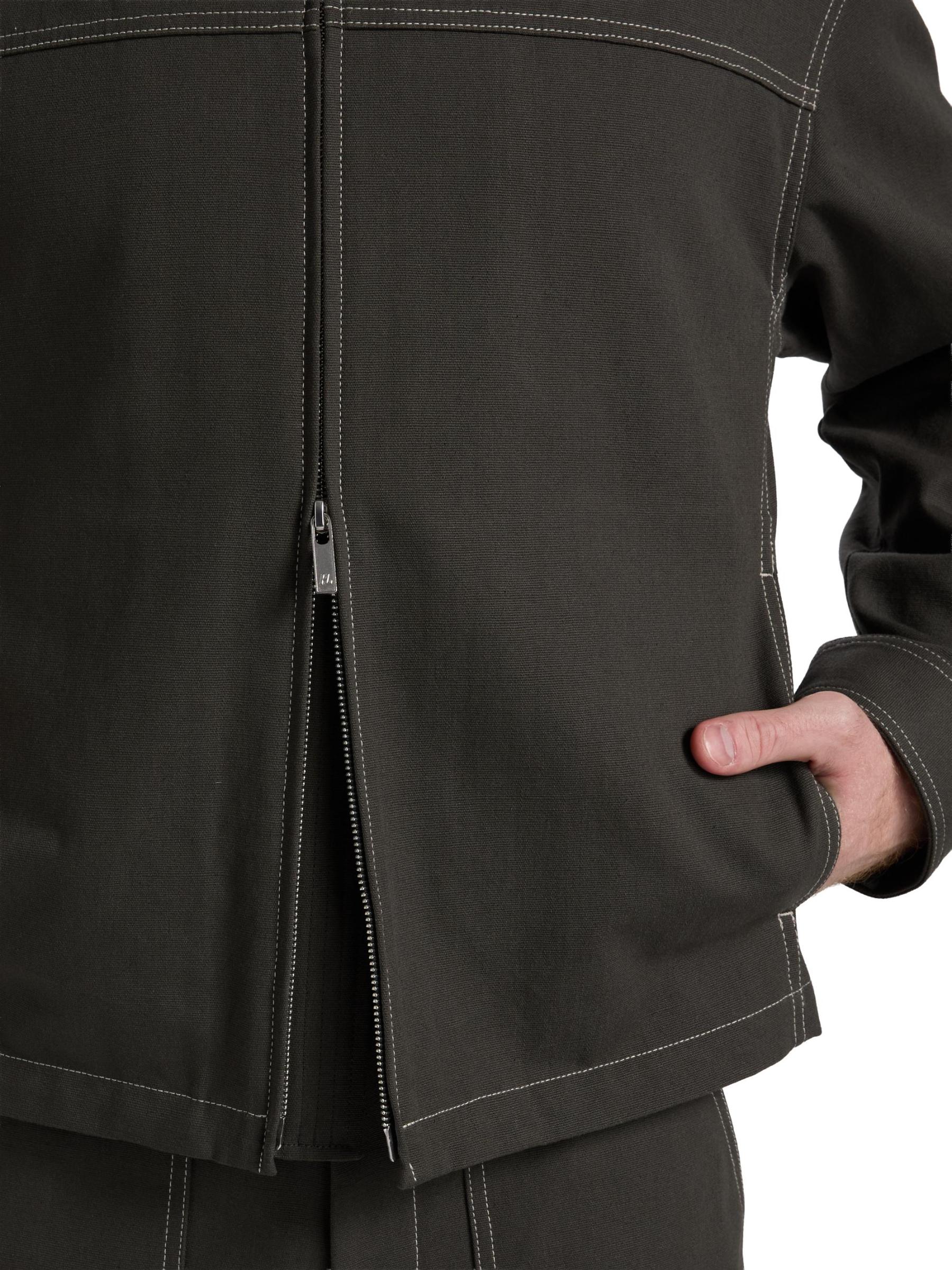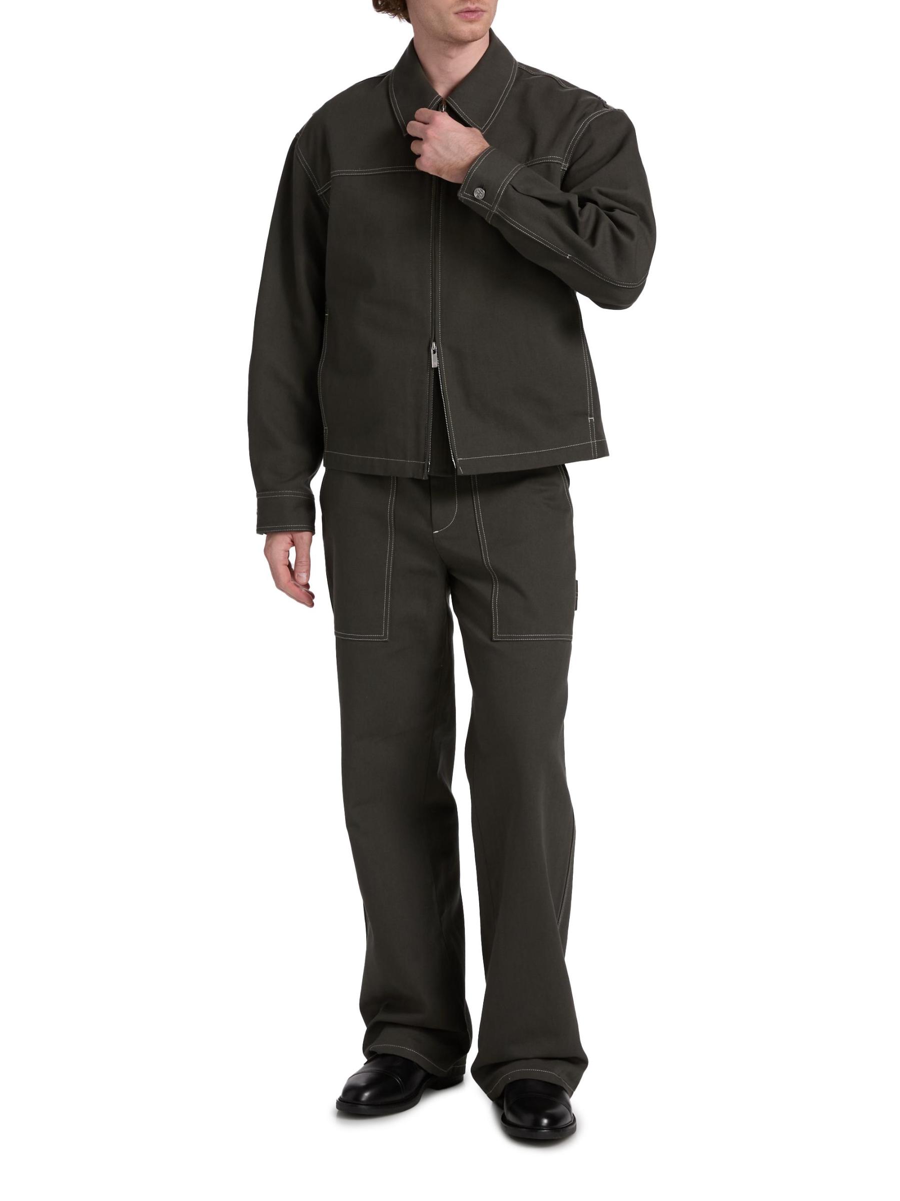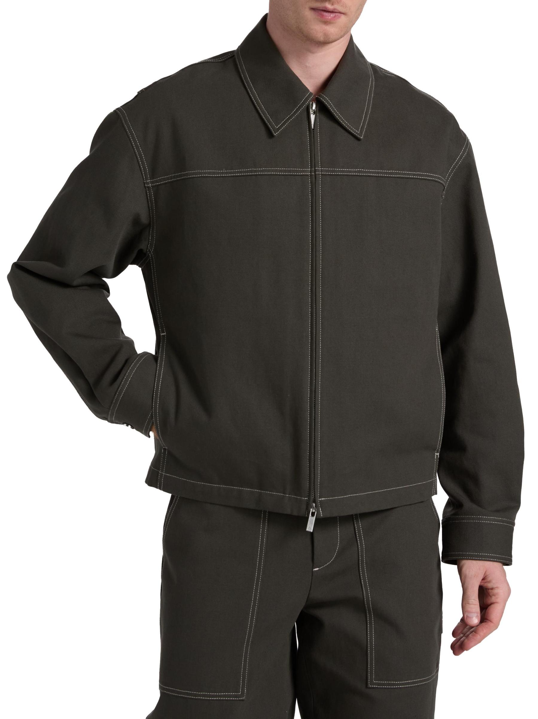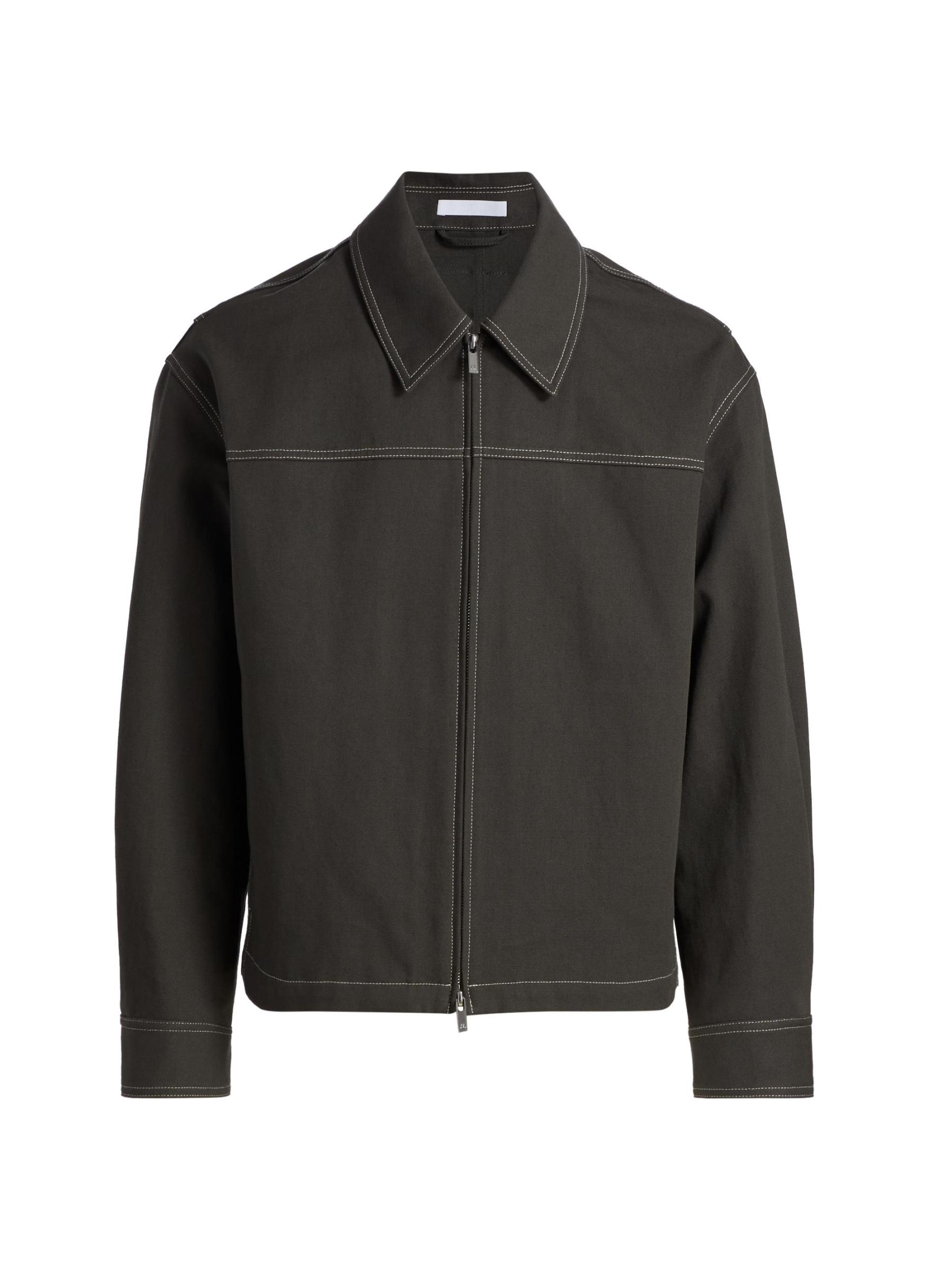 Crafted of utility-dense cotton, this carpenter jacket from Helmut Lang features contrast top-stitching. This style is cut for a relaxed fit featuring a spread collar, side on-seam pockets, and a front zip closure.Spread collar Long sleeves Side on-seam pockets Front zip closure 100% Cotton Dry clean Imported