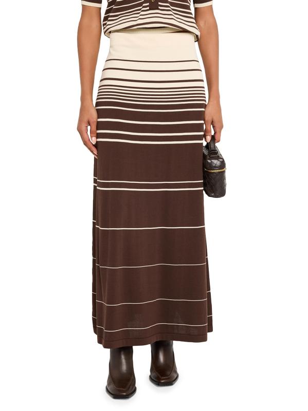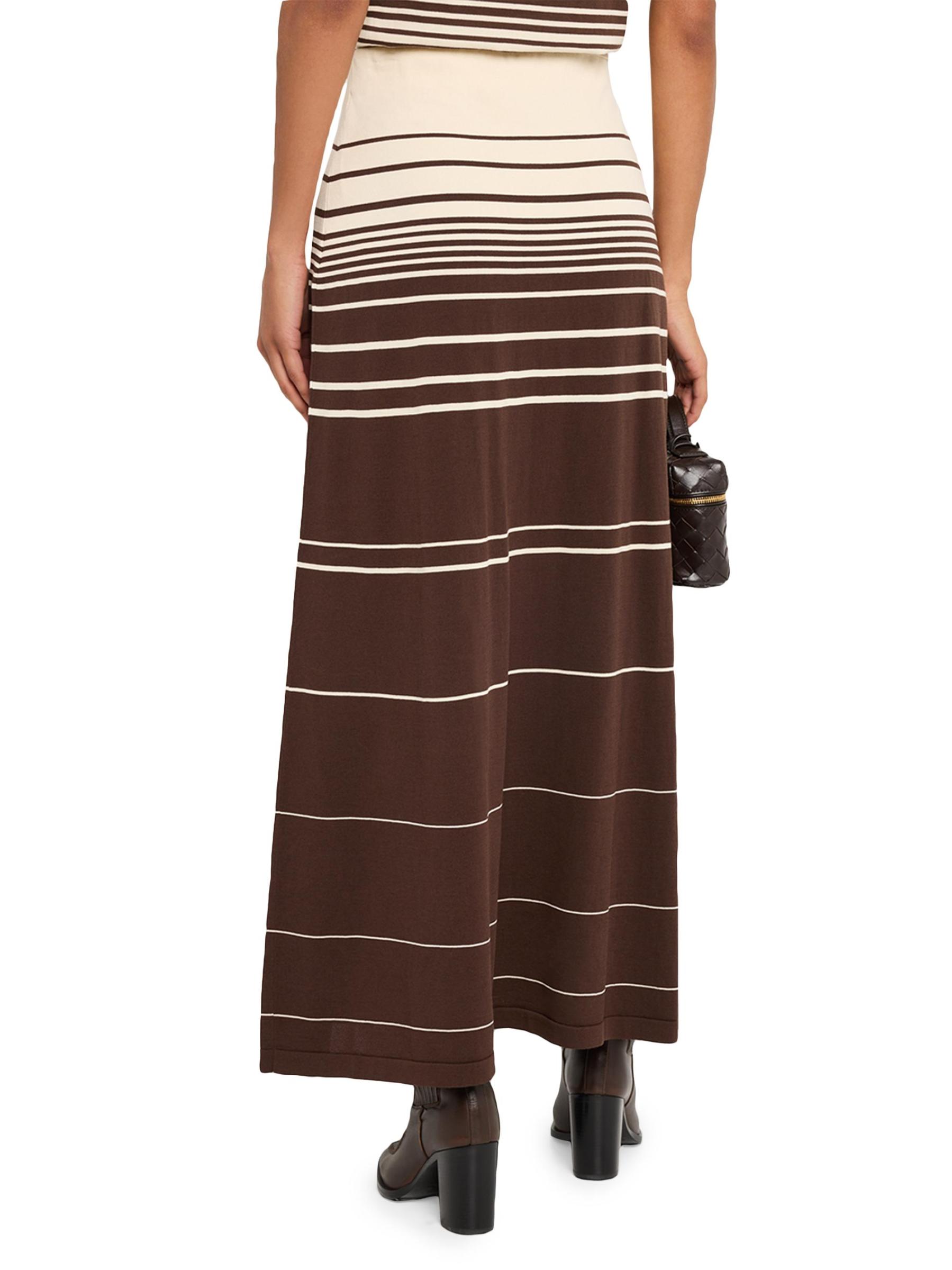 Crafted of soft stretch cotton, the Cassia maxi skirt from Faithfull the Brand features contrast variegated stripes.